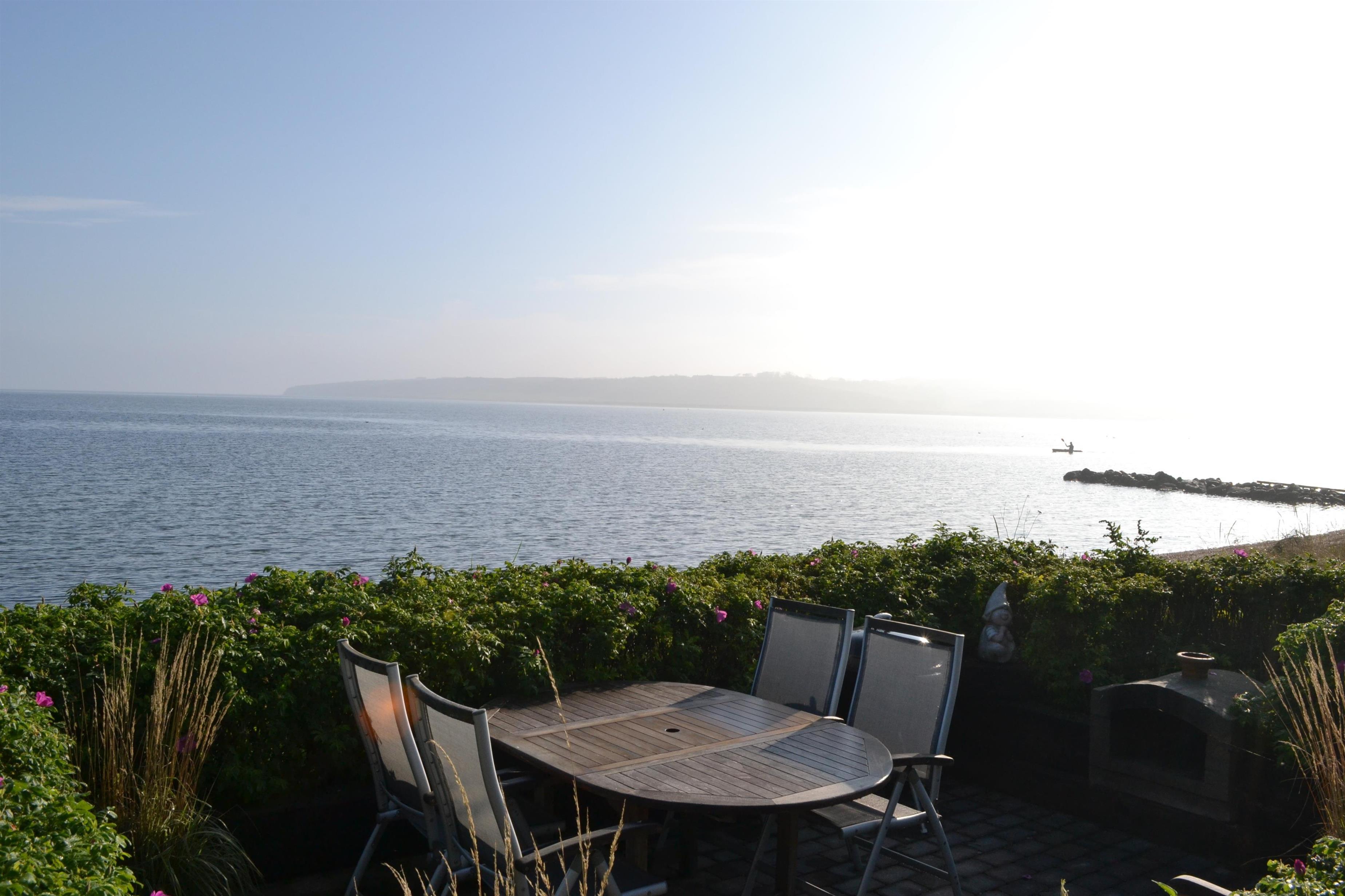 Das Haus liegt auf einem ca. 900 m² großen Grundstück mit fantastischer Lage und Aussicht. Sowohl vom Wohnzimmer als auch von der Küche aus hat man Panoramablick und es gibt Zugang zu einer schönen Terrasse mit Gartenmöbeln und einem Grill, der je nach Wind und Wetter frei platziert werden kann – ganz nach dem Sonnenstand. Zudem gibt es einen schönen Gartenbereich, in dem man immer ein windgeschütztes Plätzchen findet, obwohl das Haus in erster Reihe zum Wasser liegt.