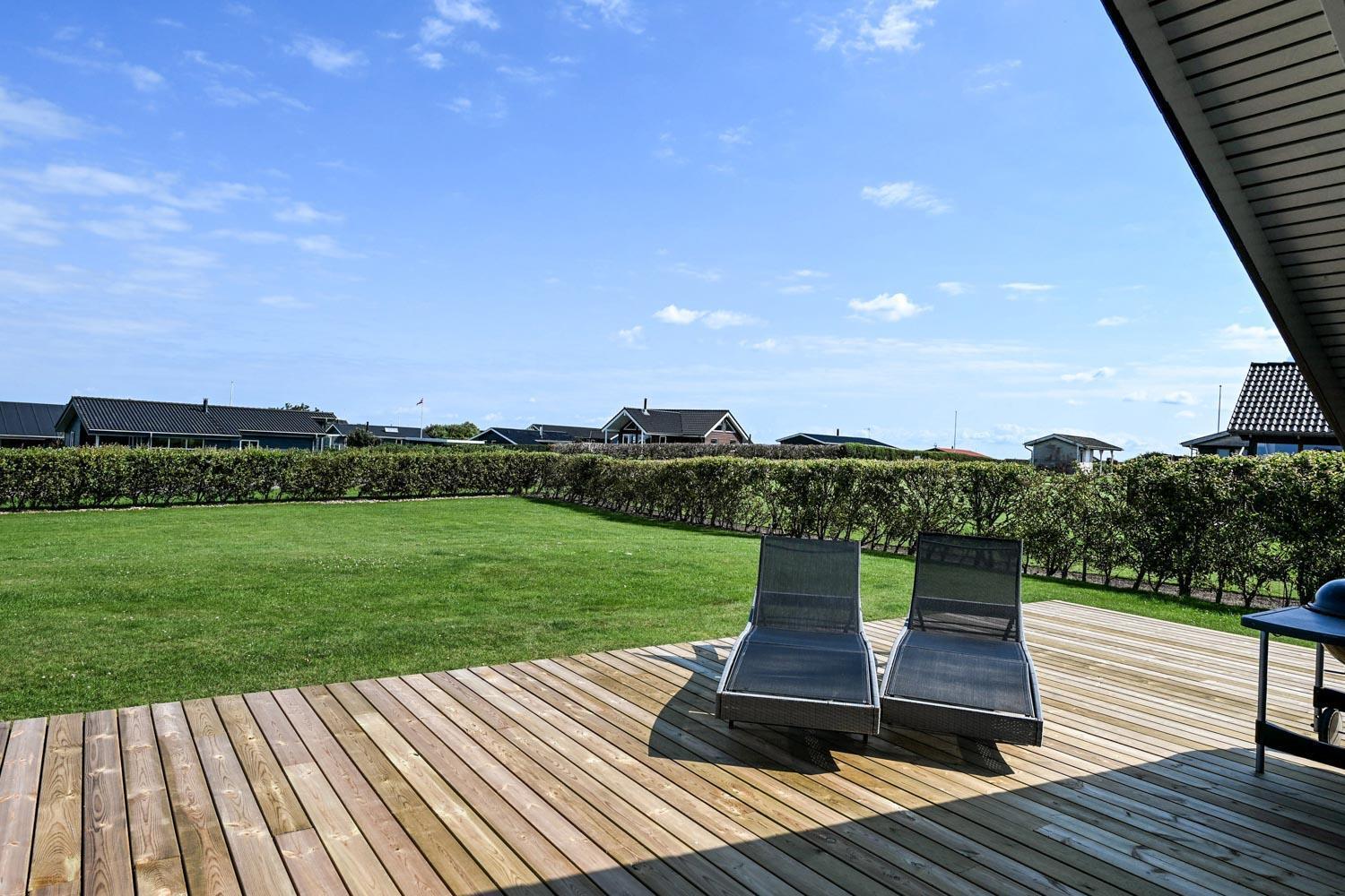 Das Haus liegt auf einem etwa 1.100 qm großen, gepflegten und teilweise eingezäunten Grundstück, von dem es Blick über den Limfjord gibt. Große, teilweise überdachte Terrassenanlage mit Gartenmöbeln, Sonnenschirm, Sonnenliegen und Grill, die Sie nach Bedarf auf der Terrasse je nach Wetter, Wind und Sonne umstellen können. Die Terrasse geht um das ganze Haus. Vom Haus aus gibt es ein Wegesystem, das Sie direkt in wenigenMinuten zum Wasser führt. Etwa 400 m vom Haus entfernt liegt der schöne Naturspielplatz, mit z. B. Fußballfeld und Rutsche.