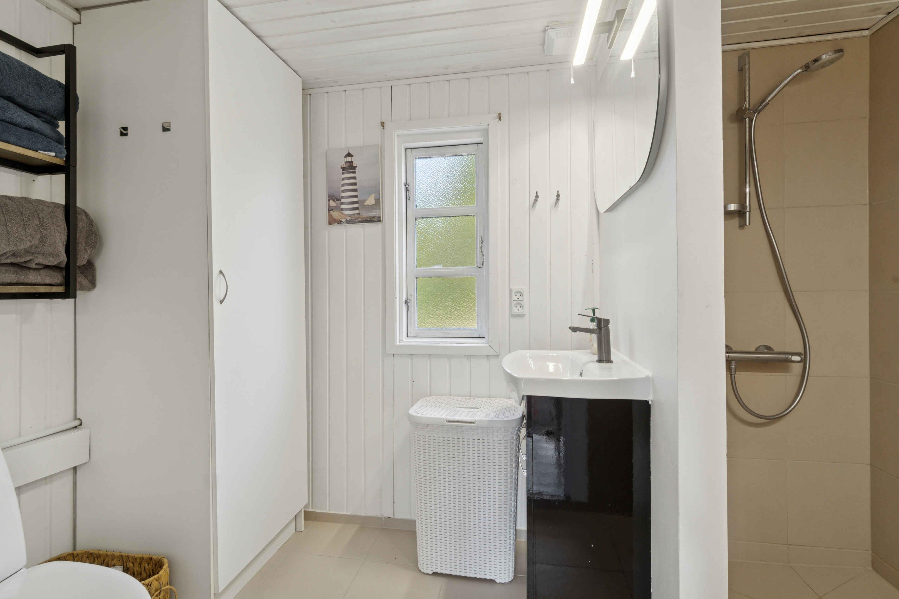 Ein helles und gut aufgeteiltes Ferienhaus von 69 m² mit Platz für sechs Personen in drei Schlafzimmern. Es verbindet modernen Komfort mit klassischem Charme und einem gemütlichen Wohnzimmer, das zur Küche hin offen ist. Ganzjährig isoliert und ausgestattet mit Kaminofen und Wärmepumpe. Das Badezimmer mit Dusche und heller Einrichtung sorgt für gute Funktionalität. Ein Nebengebäude zur Aufbewahrung und ein Naturgrundstück rund ums Haus bieten Raum für Spiel und Entspannung. Die Umgebung erstreckt sich bis zur Küste: nur ca. 200 m bis zu einem breiten, kinderfreundlichen Sandstrand mit Blauer Flagge und flachem Wasser. Fjellerup ist bekannt für seine Waffelbäckerei am Strand und kleine lokale Einkaufsmöglichkeiten. Für Ausflüge liegen Djurs Sommerland, das Kattegatcenter und der Skandinavische Tierpark in kurzer Fahrentfernung. Der Nationalpark Mols Bjerge bietet Wander- und Radwege durch hügelige Landschaften, und Ebeltoft mit dem Glasmuseum und der Fregatte Jylland ist ein historisches Erlebnis. Die Natur in Norddjurs lädt zu Tierbeobachtungen, Bernsteinsuche und Ruhe ein. Im Haus versammelt man sich im offenen Wohnbereich mit Küche und Essplatz – perfekt für Spiele- und Essensabende. Die Südwestterrasse lädt zu Grillabenden oder ruhigen Momenten unter der Birke ein. Die ruhige Lage in einer Sackgasse bietet Frieden und Sicherheit für Kinder. Einfacher Zugang sowohl zu Naturerlebnissen als auch Sehenswürdigkeiten. Ideal für Familien oder Paare, die Entspannung und Erlebnisse suchen.