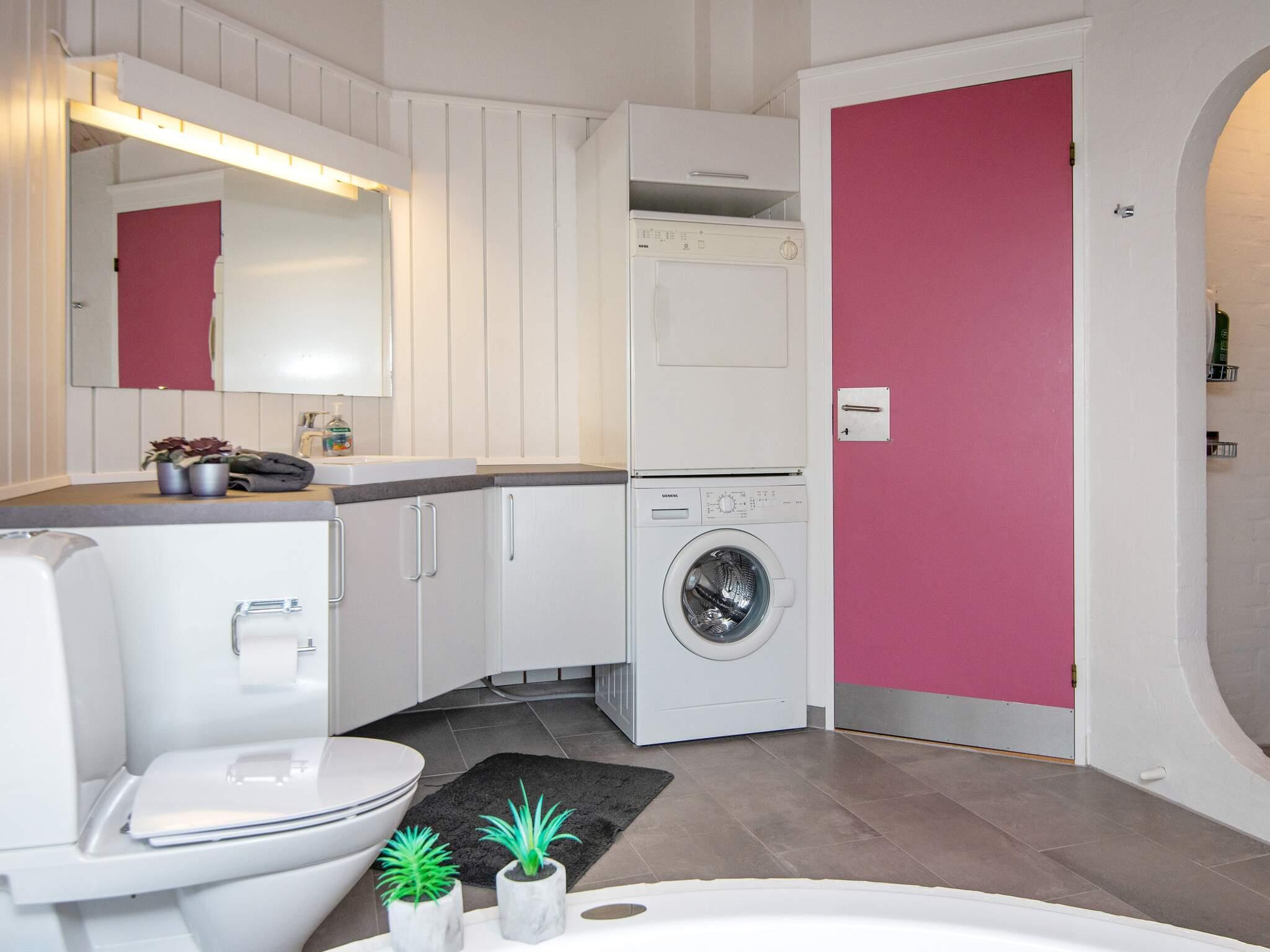 In einem der beiden Badezimmer des Hauses stehen sowohl eine Sauna als auch ein großer, runder Whirlpool für Erholung und Badepaß bereit. Außerdem offener Küchen-/Wohnbereich für das Familienleben im Haus, mit Ess- und Sitzecke sowie Holzofen und klimafreundlicher Wärmepumpe. Von diesem Raum aus hat man direkten Zugang zur Terrasse. Das Haus hat insgesamt vier Schlafzimmer die gut verteilt liegen, sodass hier auch zwei befreundete Familien prima untergebracht werden können.