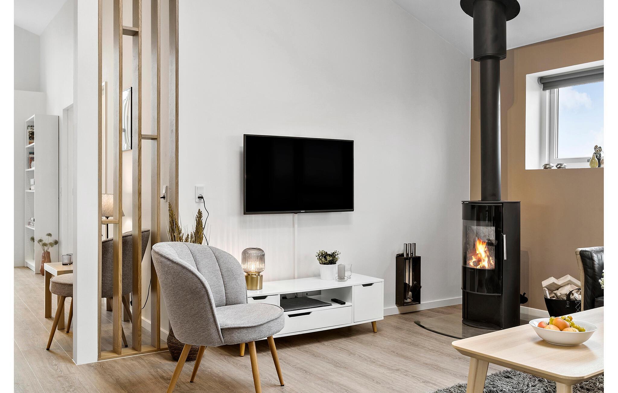 Auf einem offenen Grundstück, mit weitem Blick über die Landschaft, empfängt Sie dieses schöne Ferienhaus, das Sie mit einem ansprechenden Kontrast aus heller und dunkler Einrichtung und sehr guter Ausstattung. Durch Dachfenster und bodentiefen Fenster wird das Haus im Inneren vom Tageslicht erhellt und schafft eine wohnliche Atmosphäre. Für Ihr persönliches Wellnessprogramm können Sie im Badezimmer eine Infrarotsauna und eine Whirlpool-Badewanne nutzen und lange Urlaubstage hier ausklingen lassen.