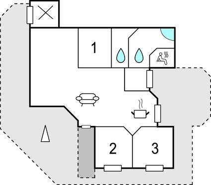 Badezimmer 9m2 (nr. 1) - WC. Warmes und kaltes Wasser. Dusche