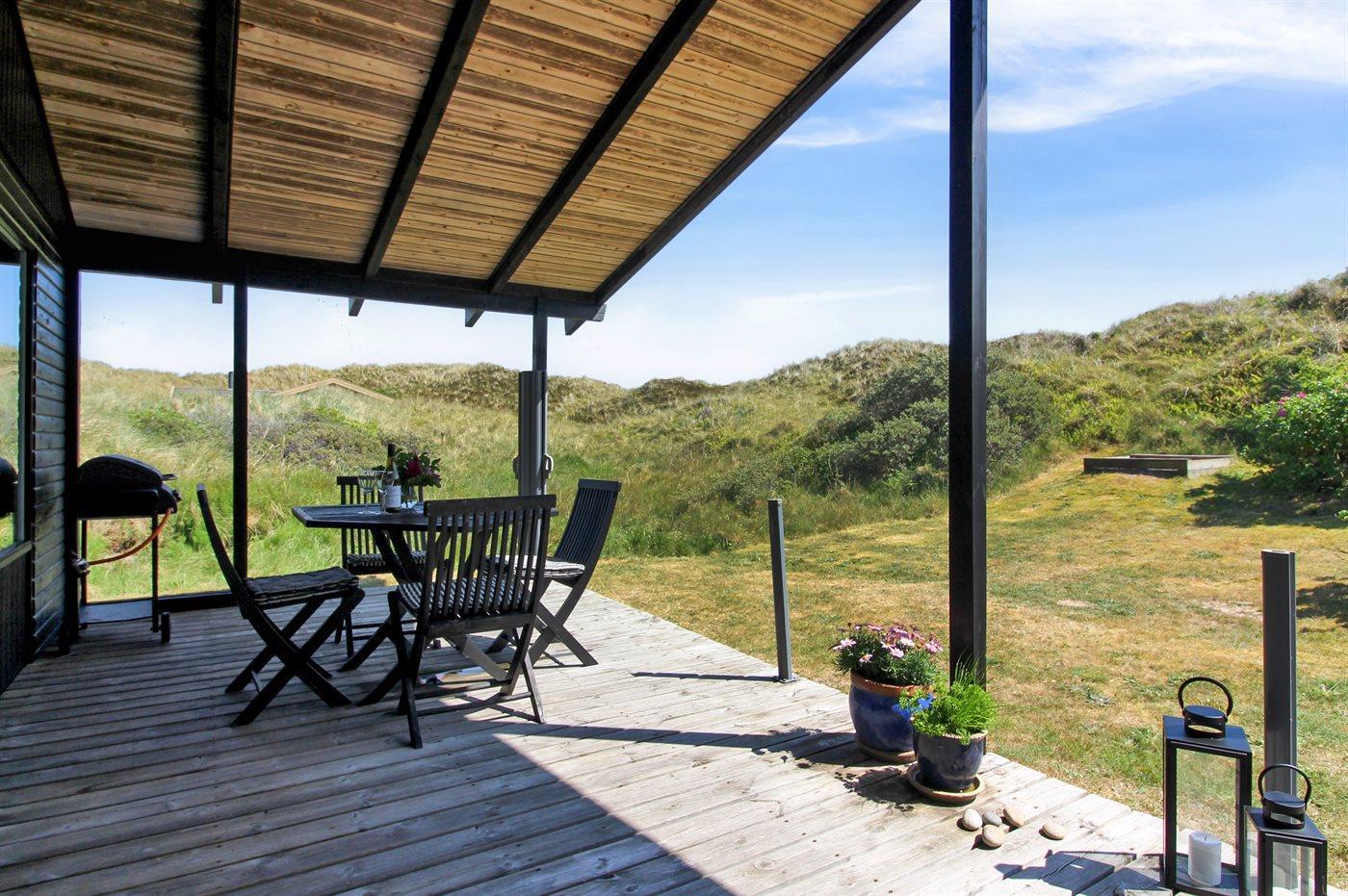 Die Ferienunterkunft liegt auf einem 2500 m² großen Dünengrundstück. Die Entfernung zum Meer beträgt 300 m. Die nächste Einkaufsmöglichkeit liegt 800 m entfernt. Es steht ein 45 m² Terrassenareal zur Verfügung. Außerdem gibt es 24 m² überdachte Terrasse. Geräteraum. Sandkasten. Es steht ein Grill zur Verfügung. Es steht ein Carport zur Verfügung. Parkplatz auf dem Grundstück.