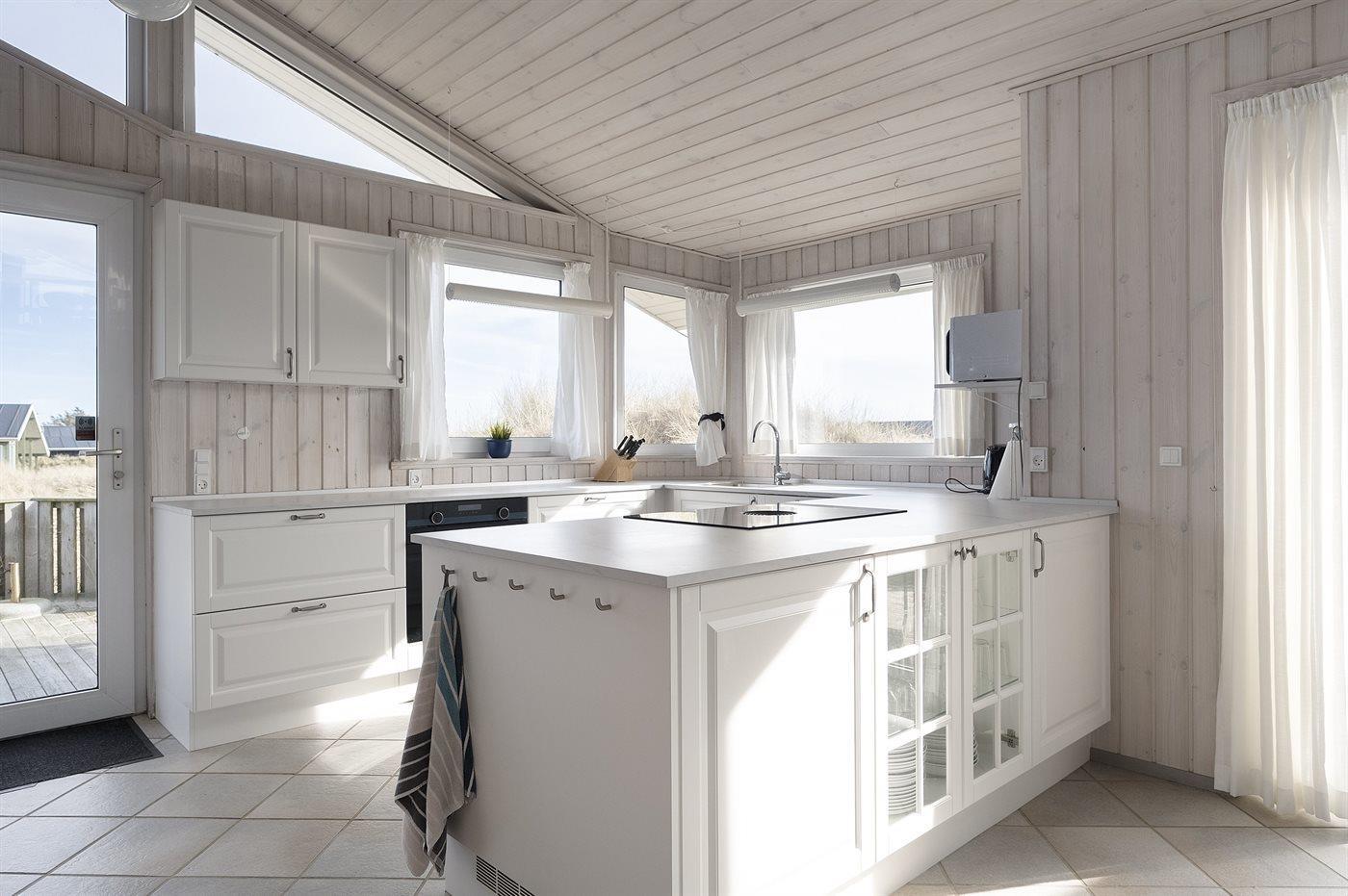 Ein fantastisch gelegenes Ferienhaus im Feriengebiet Grønhøj, mit Blick auf die Nordsee, sowohl vom Haus als auch vom Grundstück aus. Das Haus liegt in der Nähe des schönen Badestrandes und der herrlichen Natur, die zu lange Spaziergänge mit oder ohne Hund einlädt.