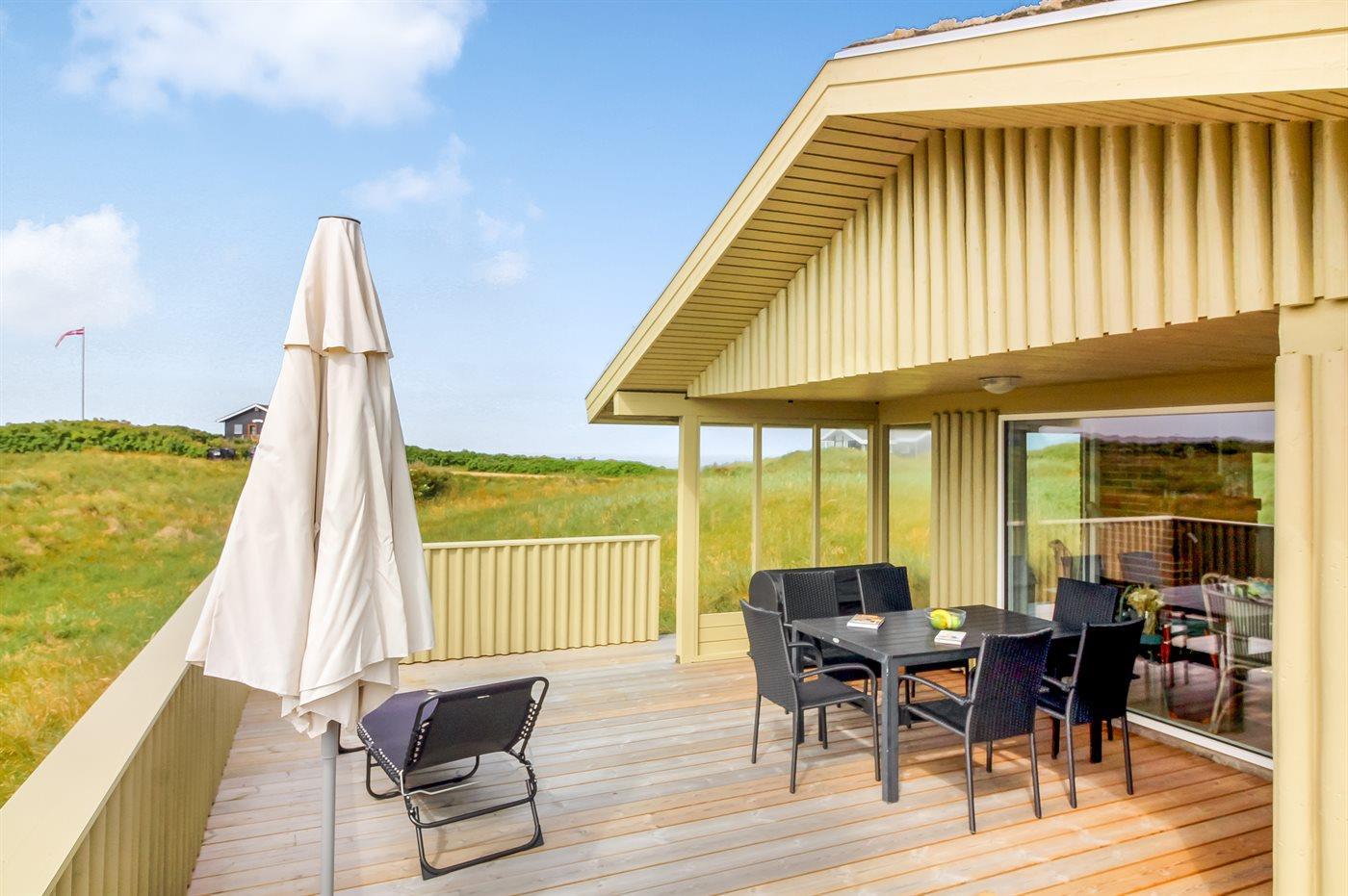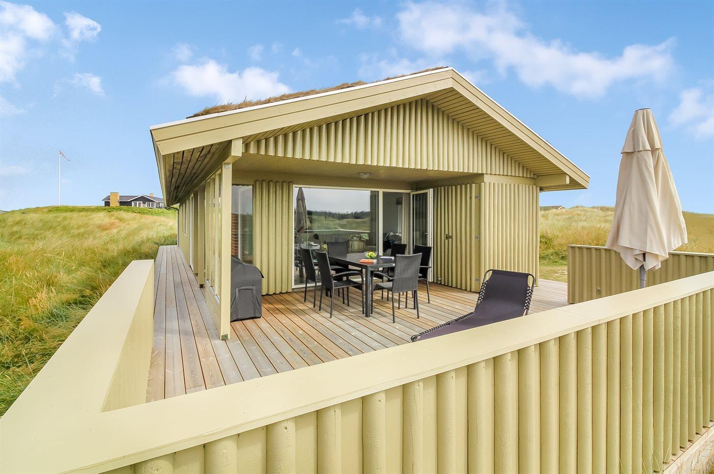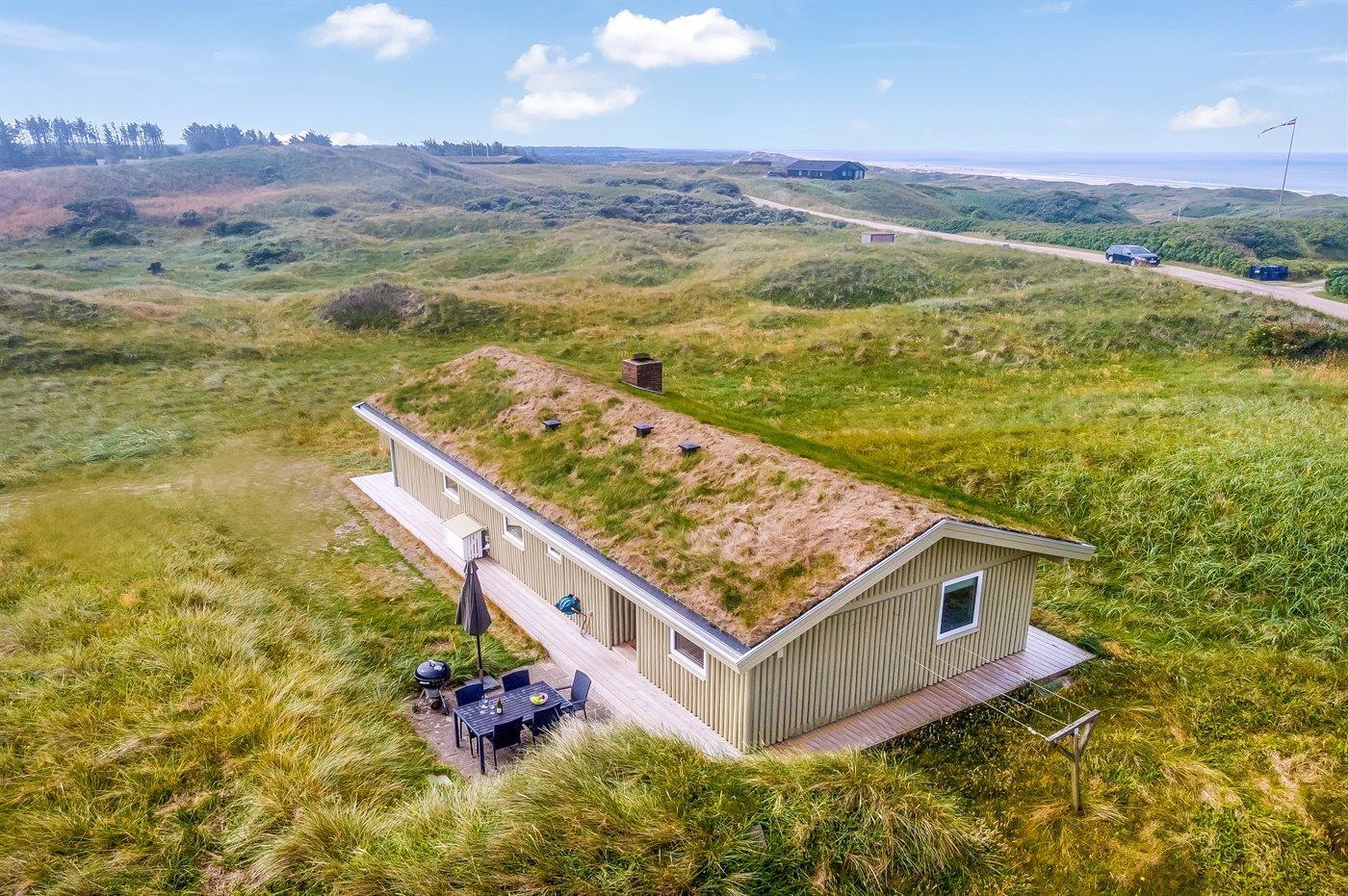 Ein schönes Ferienhaus im naturschönen Feriengebiet Grønhøj. Hier ist man nahe an der Nordsee und kann die Aussicht sowohl vom Haus als auch vom Grundstück aus genießen.