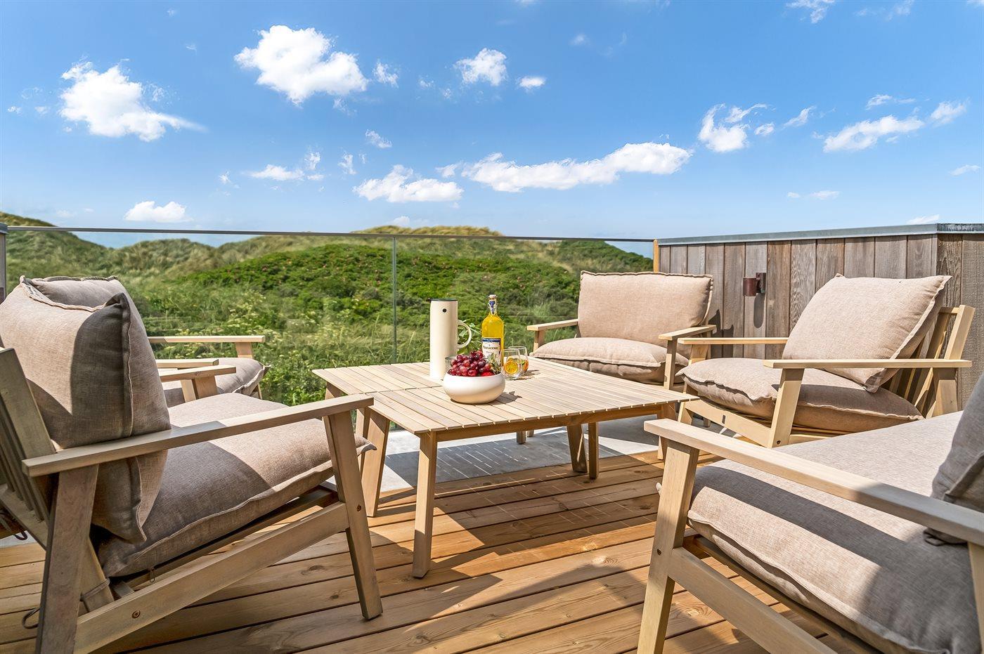Das Ferienhaus liegt auf einem 2.586 m² großen Dünengrundstück. Das Meer ist nur 50 m entfernt. Die nächste Einkaufsmöglichkeit befindet sich in 400 m Entfernung. Zum Haus gehören offene Terrassenbereiche sowie eine überdachte Terrasse. Ein Grill steht zur Verfügung. Zudem gibt es eine Garage und Parkmöglichkeiten direkt am Haus.
