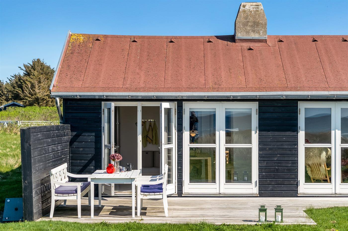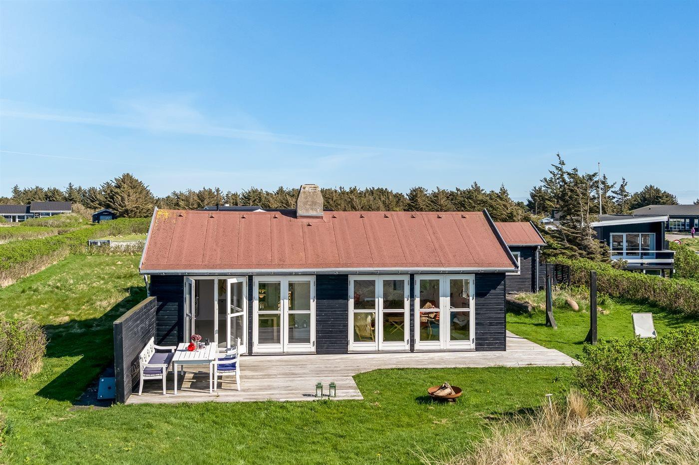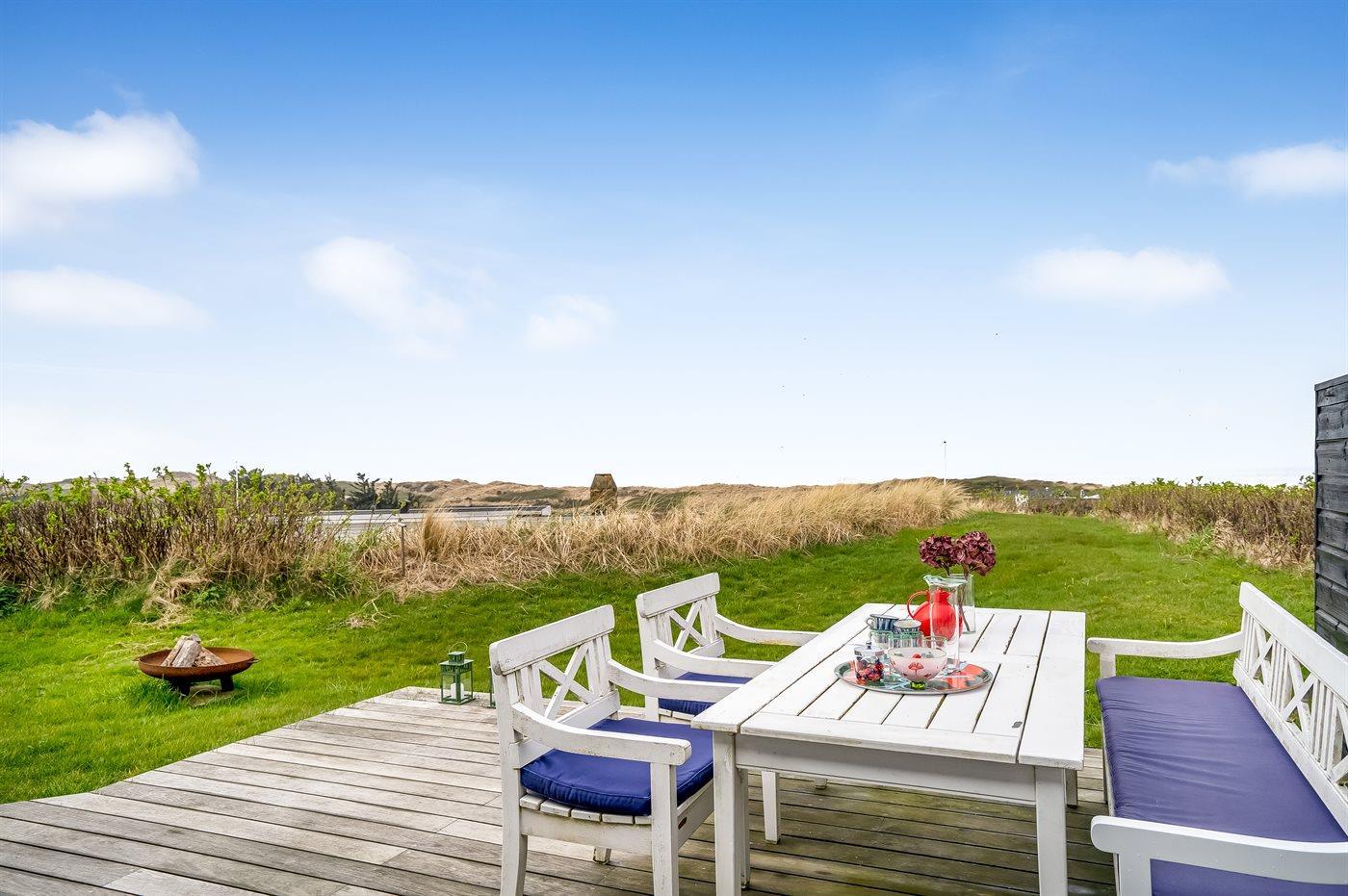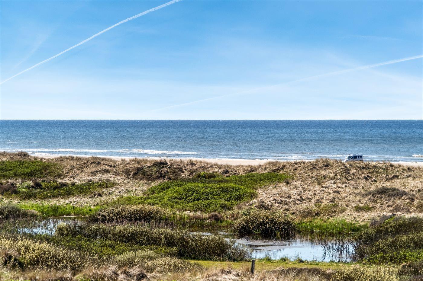 Ein fantastisches Ferienhaus mit einem 180-Grad-Panoramablick über die Nordsee. Die Aussicht vom Haus ist absolut unvergleichlich – mehr Unterhaltung als einfach aus dem Fenster zu schauen, brauchst du hier nicht. Das Haus liegt erhöht im Feriengebiet Grønhøj, und auf dem Grundstück gibt es einen Bunker, ein kleines historisches Detail.