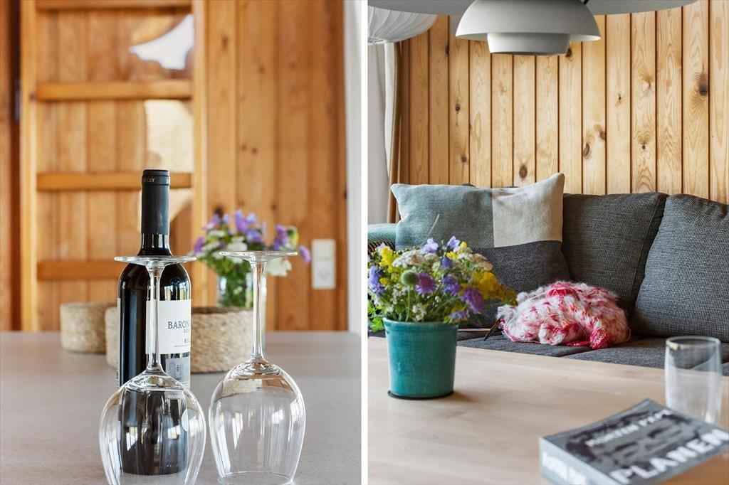Drinnen erwartet dich eine helle und einladende Atmosphäre. Die hohen Decken im Wohnzimmer und in der Küche sorgen für ein großzügiges Raumgefühl, während der Kamin eine gemütliche Stimmung für entspannte Abende schafft. Wohnzimmer und Essbereich sind geschmackvoll integriert, und die Küche bietet nicht nur alles, was du für die Ferienmahlzeiten benötigst, sondern auch einen herrlichen Meerblick, der das Kochen zu einem Erlebnis macht. Das Ferienhaus verfügt über drei Schlafzimmer, zwei Dachböden mit Matratzen und ein Badezimmer mit Dusche und Fußbodenheizung. Die Quadratmeter sind optimal genutzt, sodass sowohl Familien als auch Paare ihren Aufenthalt in komfortabler Umgebung genießen können.