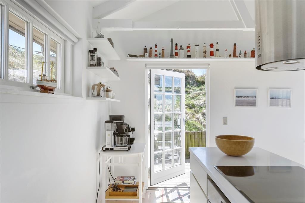 Das Herz des Hauses ist die helle Wohnküche von ca. 30 m², in der ihr kochen könnt, während ihr den Ausblick genießt und die Morgensonne auf den Wellen tanzen seht. Der Raum hat eine offene Dachkonstruktion, Sprossenfenster und eine ruhige Atmosphäre wie in einem Badehotel. Die beiden Hauptschlafzimmer verfügen über neue, hochwertige Betten und bieten direkten Meerblick vom Bett aus. Außerdem gibt es ein gemütliches Etagenzimmer und ein helles Badezimmer mit großer Duschkabine. Im Annex befindet sich ein helles Zimmer mit Meerblick, ein kleines WC und viel Schrankplatz – ideal für Teenager oder Gäste. Das Haus verfügt über vier Schlafzimmer und acht Schlafplätze, kann jedoch nur für sechs Gäste gemietet werden, um den Komfort zu bewahren.