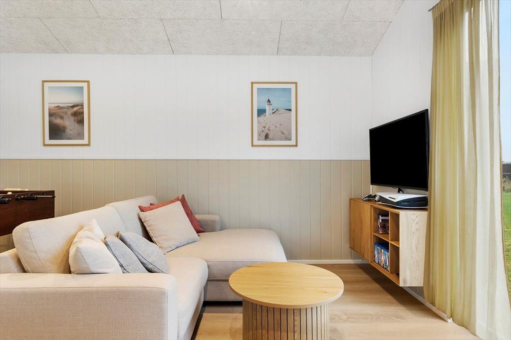 Wenn die Sonne hoch am Himmel steht, bietet es sich an, an den Strand zu gehen oder die wunderschöne Natur rund um Grønhøj zu erkunden – aber vergiss nicht, auch Zeit einzuplanen, um auf der herrlichen Terrasse des Hauses zu entspannen. Von allen Schlafzimmern sowie vom Wohnzimmer und dem Aktivitätsraum gibt es direkten Zugang zur Holzterrasse, sodass der Außenbereich wie eine natürliche Verlängerung des Hauses wirkt. Je nach Wetter und Stimmung kannst du dich unter freiem Himmel oder in einem der überdachten Bereiche niederlassen. Und wenn es draußen ein wenig kühl ist, fühlt sich ein warmes Bad im wunderbaren Außen-Whirlpool der Terrasse besonders wohltuend an.