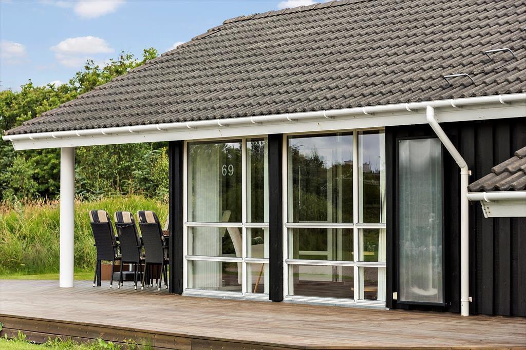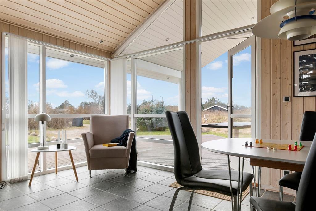 Das Ferienhaus ist von einer großen und schönen Terrasse umgeben, auf der es viel Platz gibt, um die Sonnenstrahlen zu genießen oder ein leckeres Abendessen im Freien zu grillen. Die große Terrasse verläuft um mehrere Seiten des Hauses, sodass du immer einen Sonnen- oder Schattenplatz finden kannst. Hier kannst du mit einem guten Buch sitzen, Spiele mit der Familie spielen oder einfach entspannen und die frische Meeresluft genießen. Der große Rasen eignet sich perfekt zum Spielen für Kinder, und die Umgebung des Hauses bietet ein gut ausgebautes Wegenetz, auf dem ihr lange Spaziergänge unternehmen und die schöne Natur erleben könnt. Es ist auch nicht weit zum Strand, wo ihr den Tag mit Baden, Sandburgenbauen oder einem erfrischenden Spaziergang am Wasser verbringen könnt.