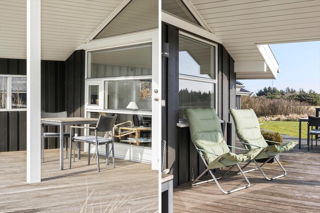 Die große Holzterrasse ist das Herzstück des Ferienhauses in den Sommermonaten. Hier kannst du mit einem guten Buch entspannen, die warmen Sonnenstrahlen genießen oder die Familie zu gemütlichen Mahlzeiten unter freiem Himmel versammeln. Der Garten bietet viel Privatsphäre, während der Blick auf das grüne Gebiet ein Gefühl von Frieden und Ruhe vermittelt.