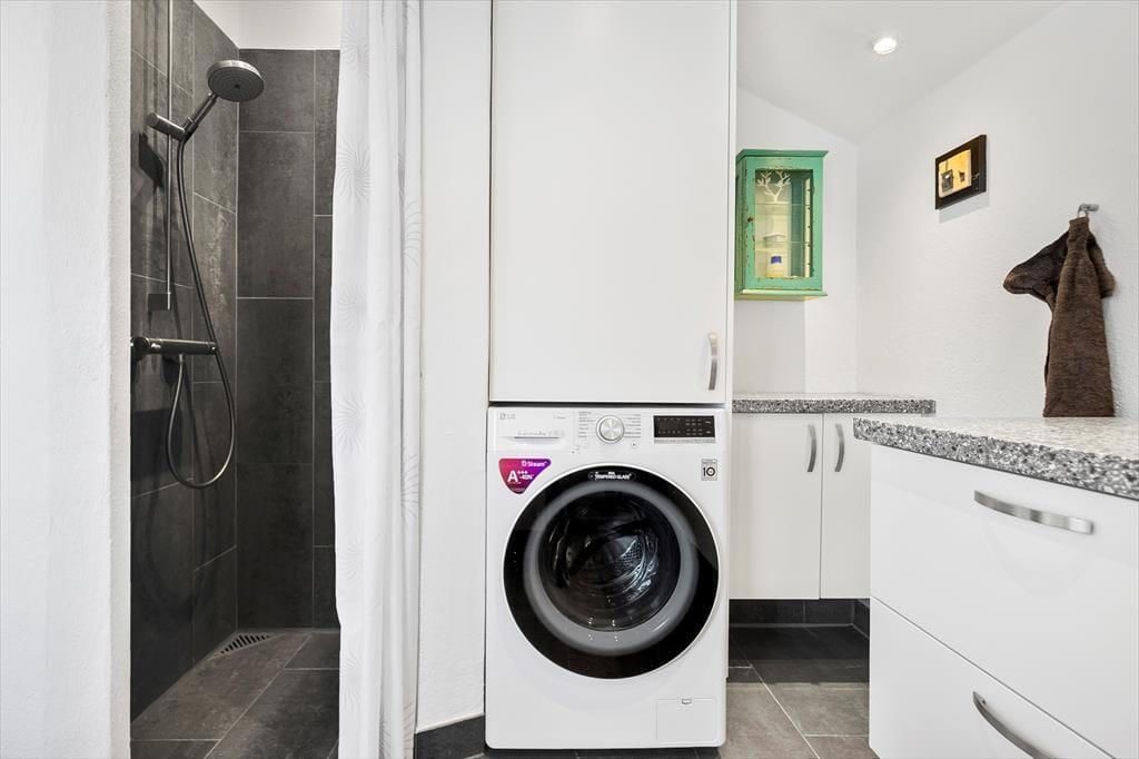 Das zum Haus gehörige Gemeinschaftshaus ist geöffnet von Ostern bis Mitte Oktober. Hier gibt es einen 50m2 großen Pool und einen Spielplatz. Waschmaschine og Trockner sind gegen Bezahlung auch im Gemeinschaftsgebäude zugänglich. Von den Umkleiden aus gelangt man zu den Saunen. Bitte beachten Sie, dass die Saunen nach Geschlecht getrennt sind und durch Münzeinwurf betätigt werden können.