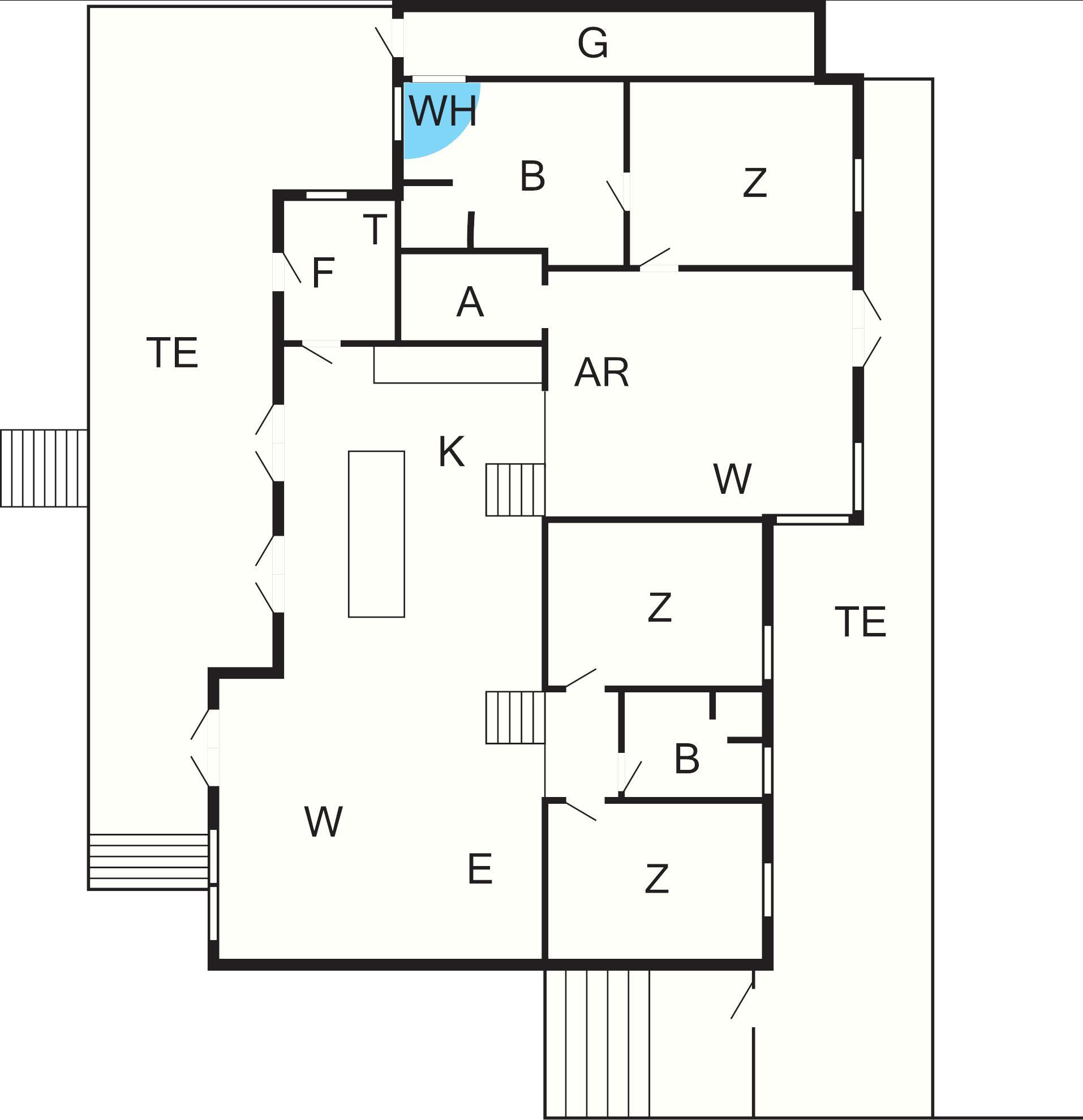 Das Ferienhaus selbst verfügt über drei Schlafzimmer mit Doppelbett und eine Schlafnische für zwei Personen – alle mit guten Betten. Es gibt zwei Badezimmer mit WC und Dusche – eines davon zusätzlich mit Waschmaschine/Trockner und Whirlpool.
