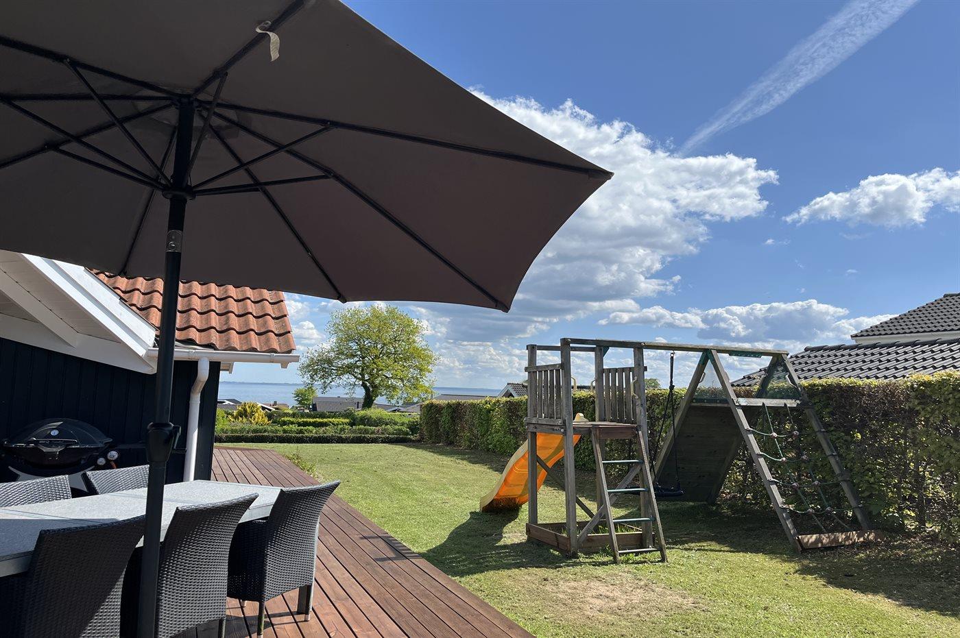 Genießen Sie Meerblick, Sauna und Whirlpool in diesem gemütlichen Ferienhaus mit großem Garten und Spielbereich in Grønninghoved.