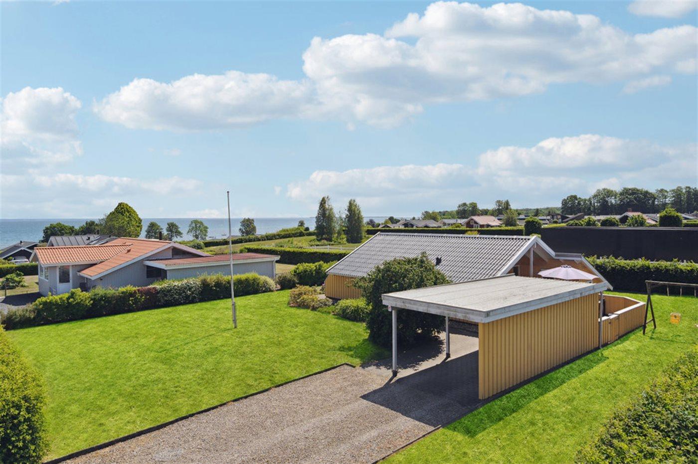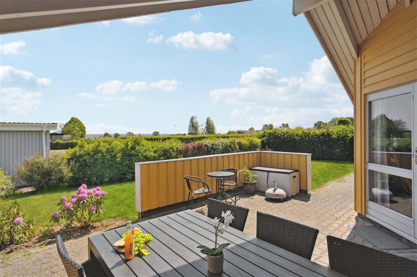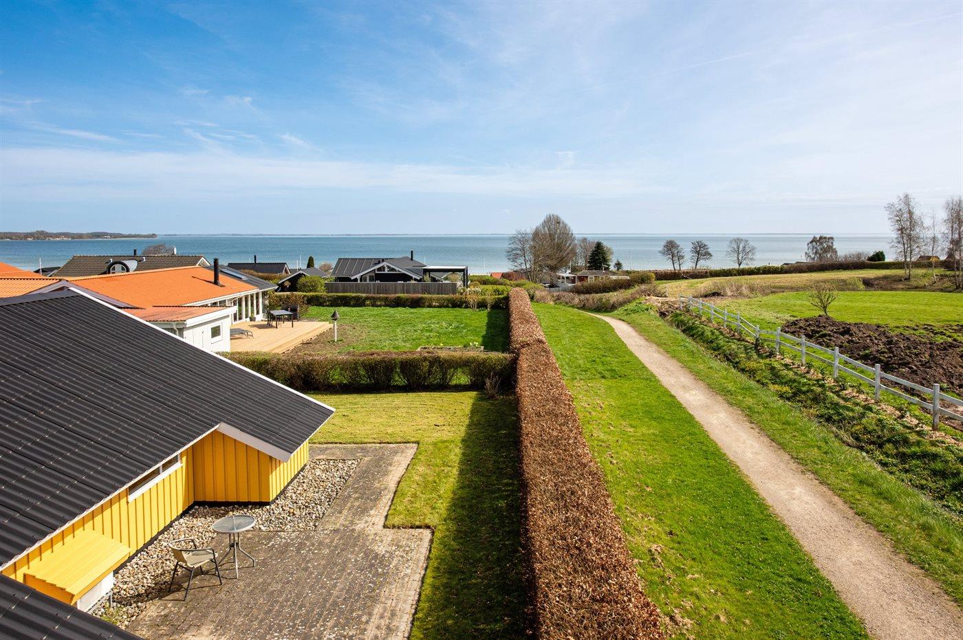 Ferienhaus in Grønninghoved, nahe am Badestrand. Vom Ferienhaus und dem Grundstück hast du Aussicht auf das Wasser.