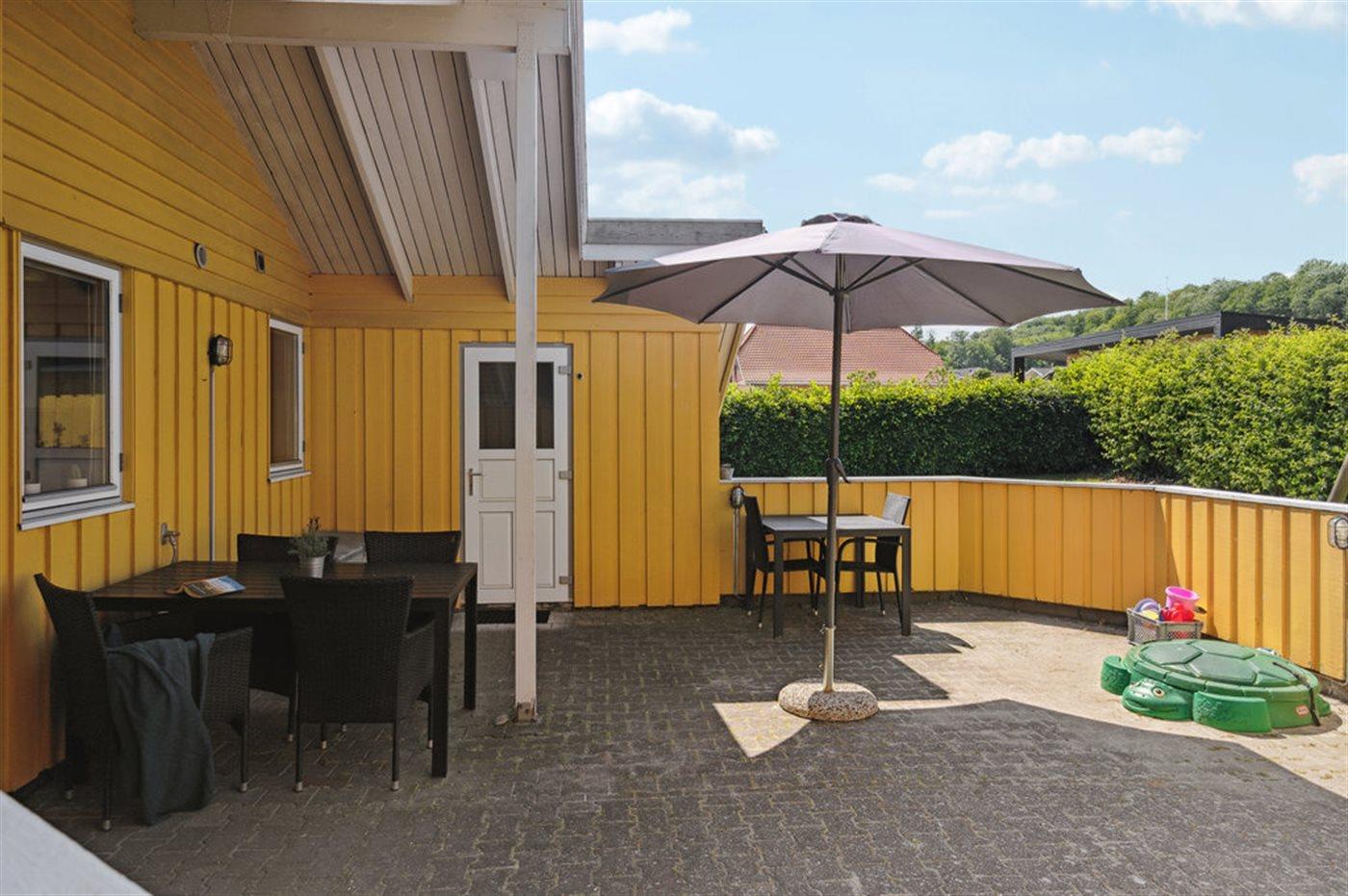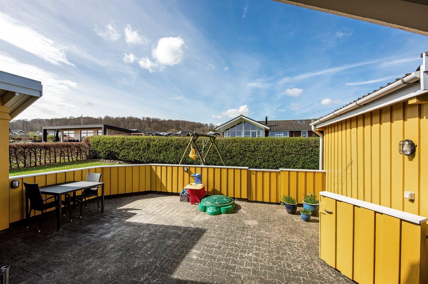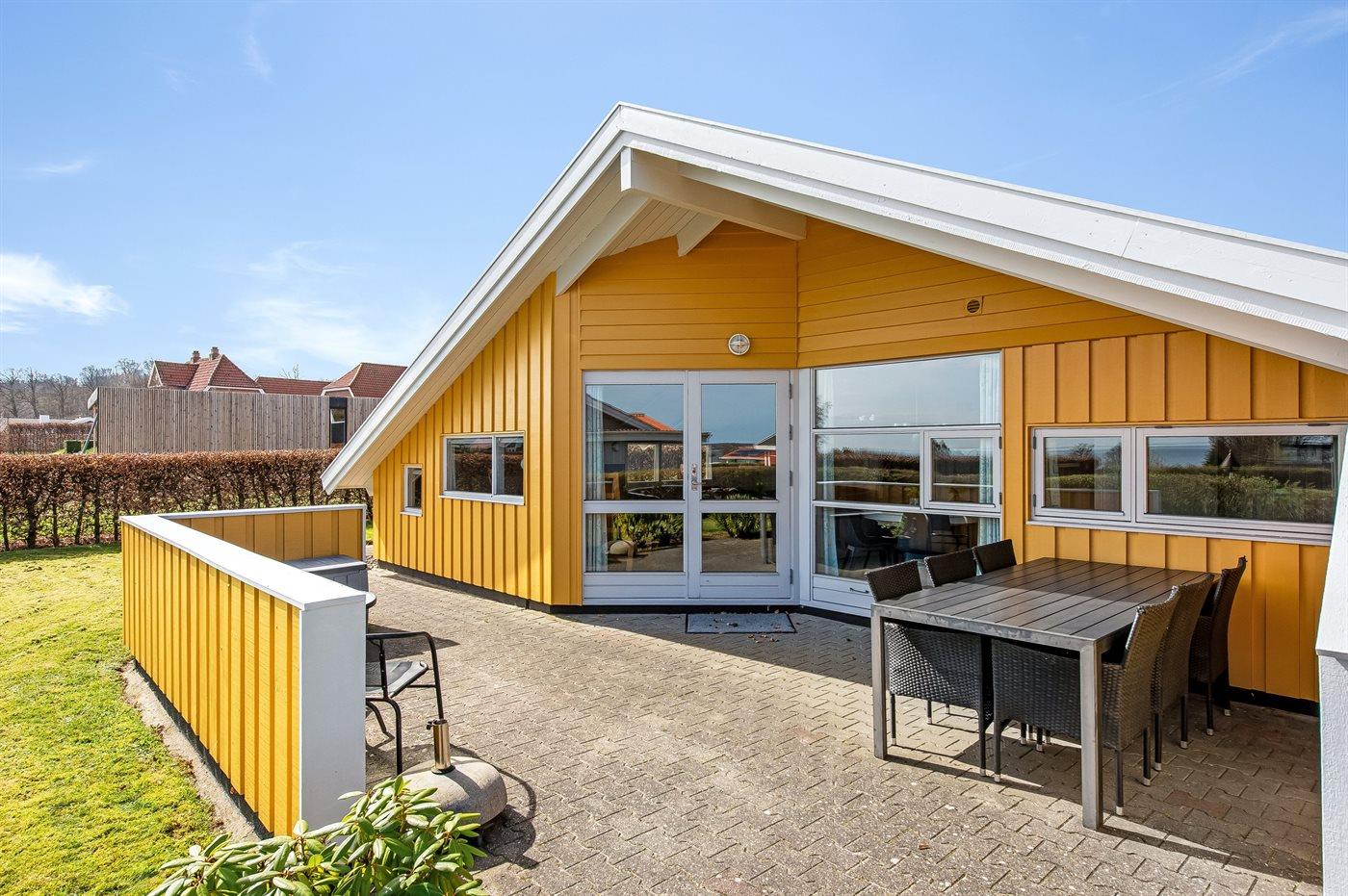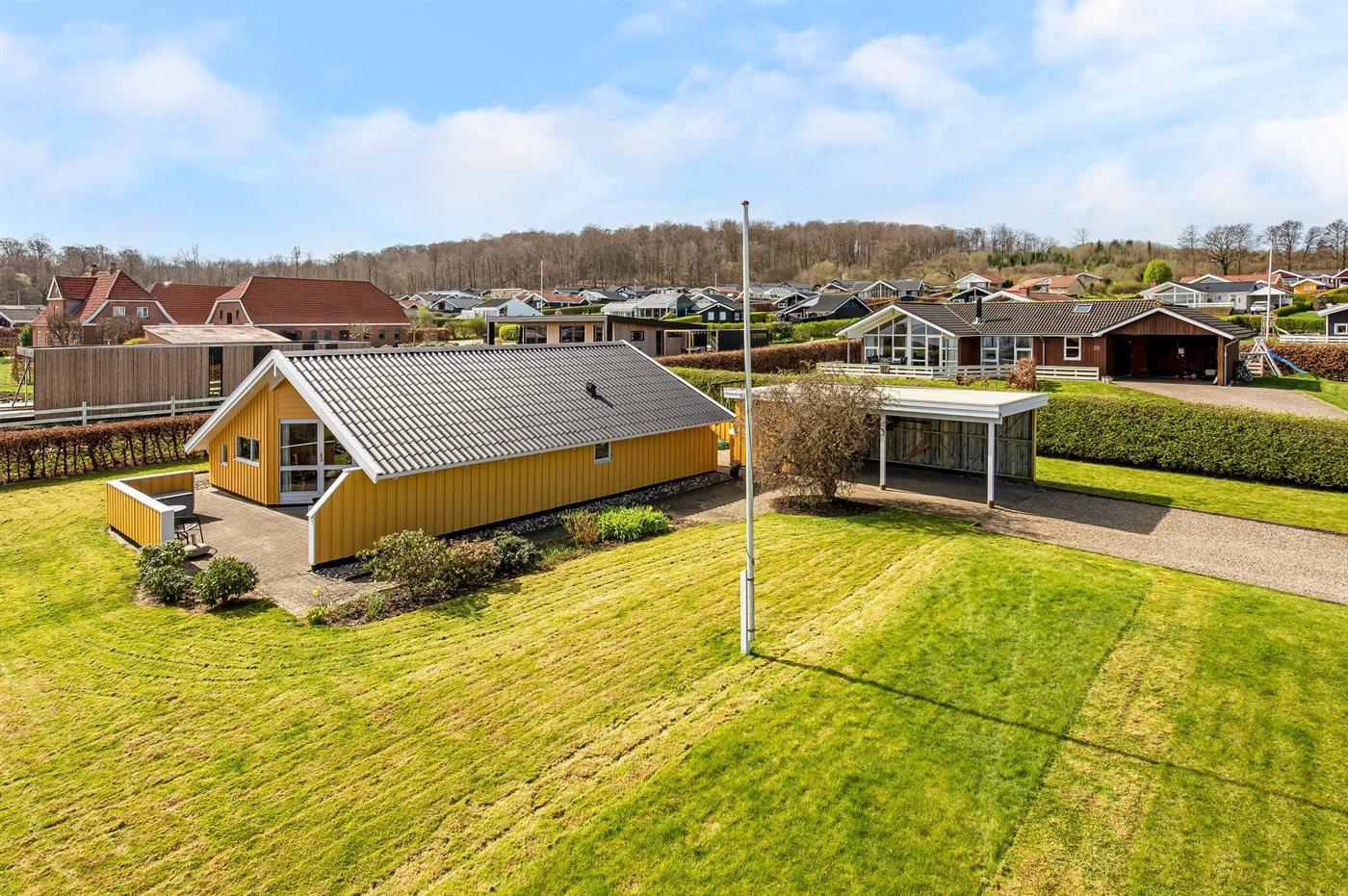 Ferienhaus in Grønninghoved, nahe am Badestrand. Vom Ferienhaus und dem Grundstück hast du Aussicht auf das Wasser.