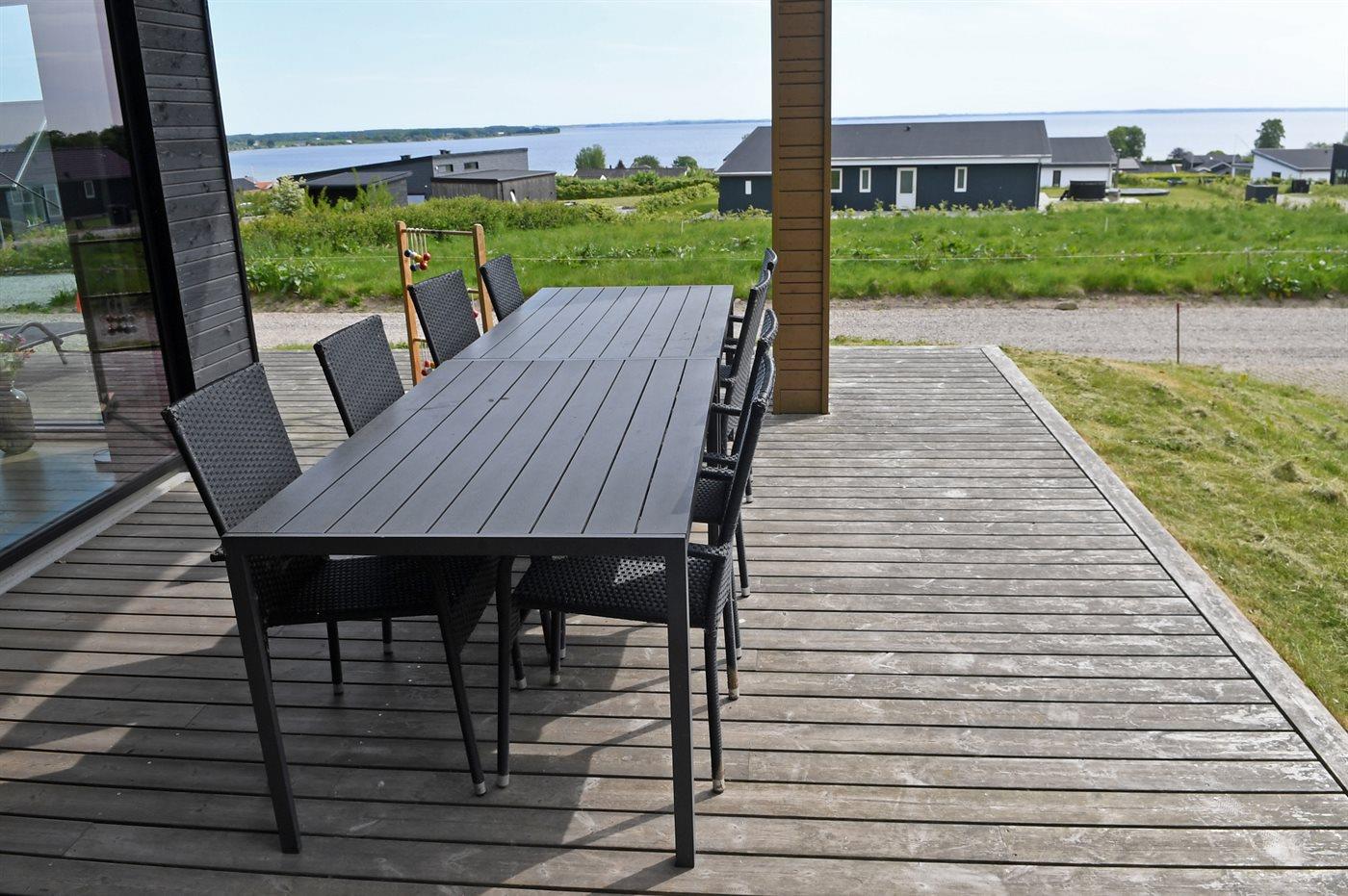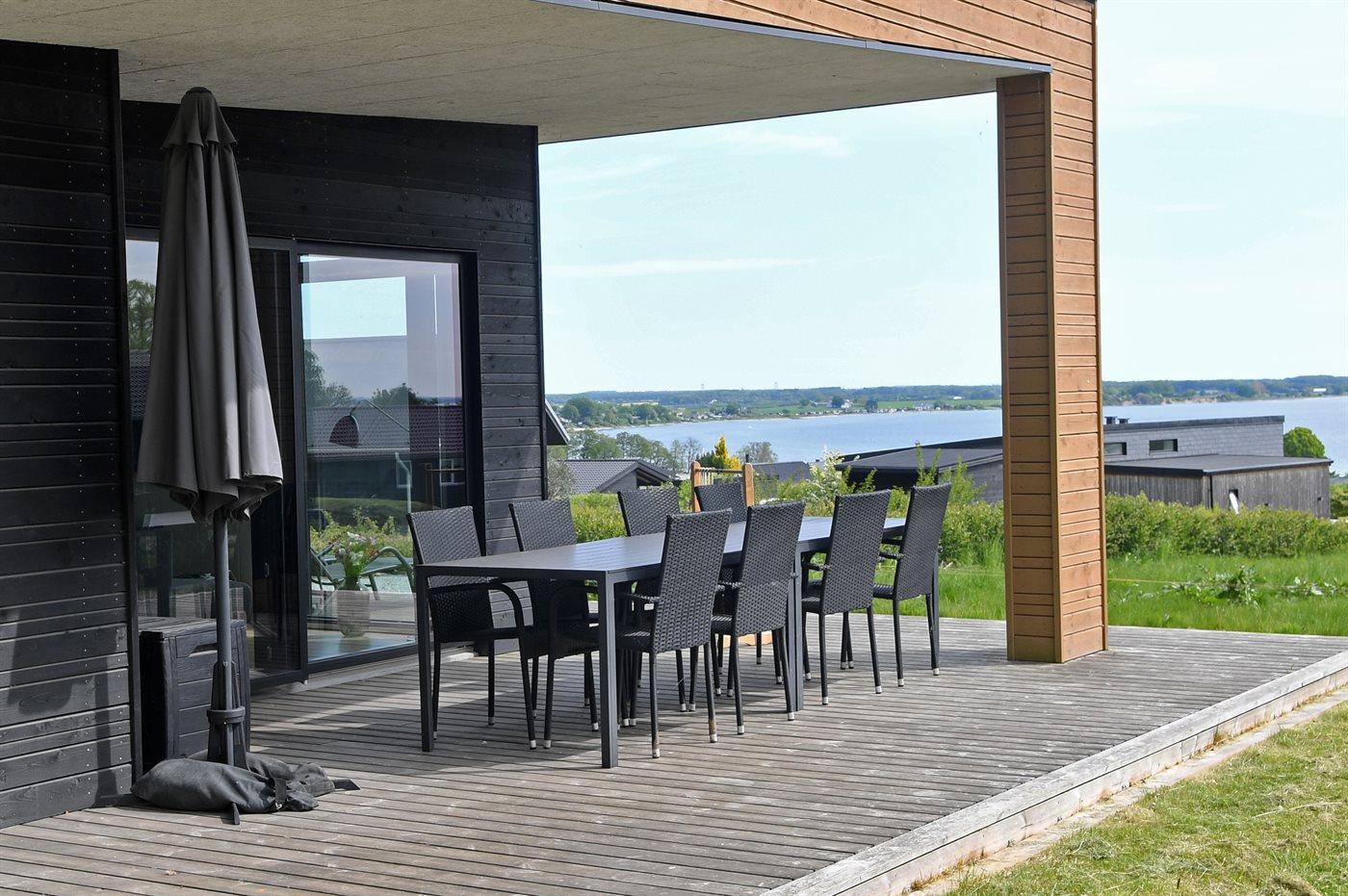 Modernes Ferienhaus in Grønninghoved mit Meerblick, Aktivitätsraum und Terrasse für erholsame Tage in Dänemark.