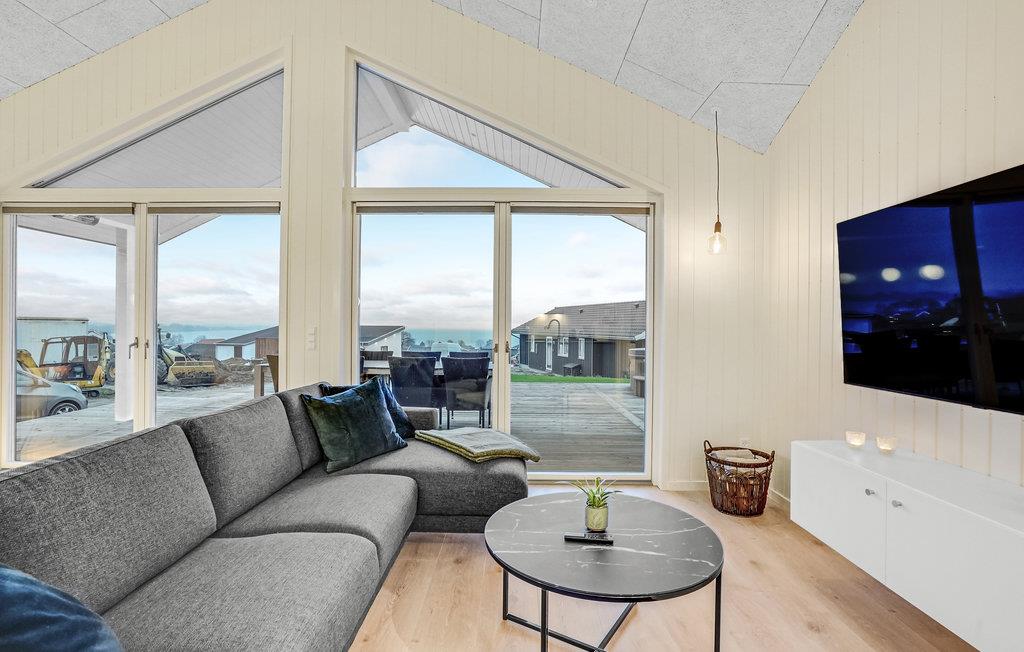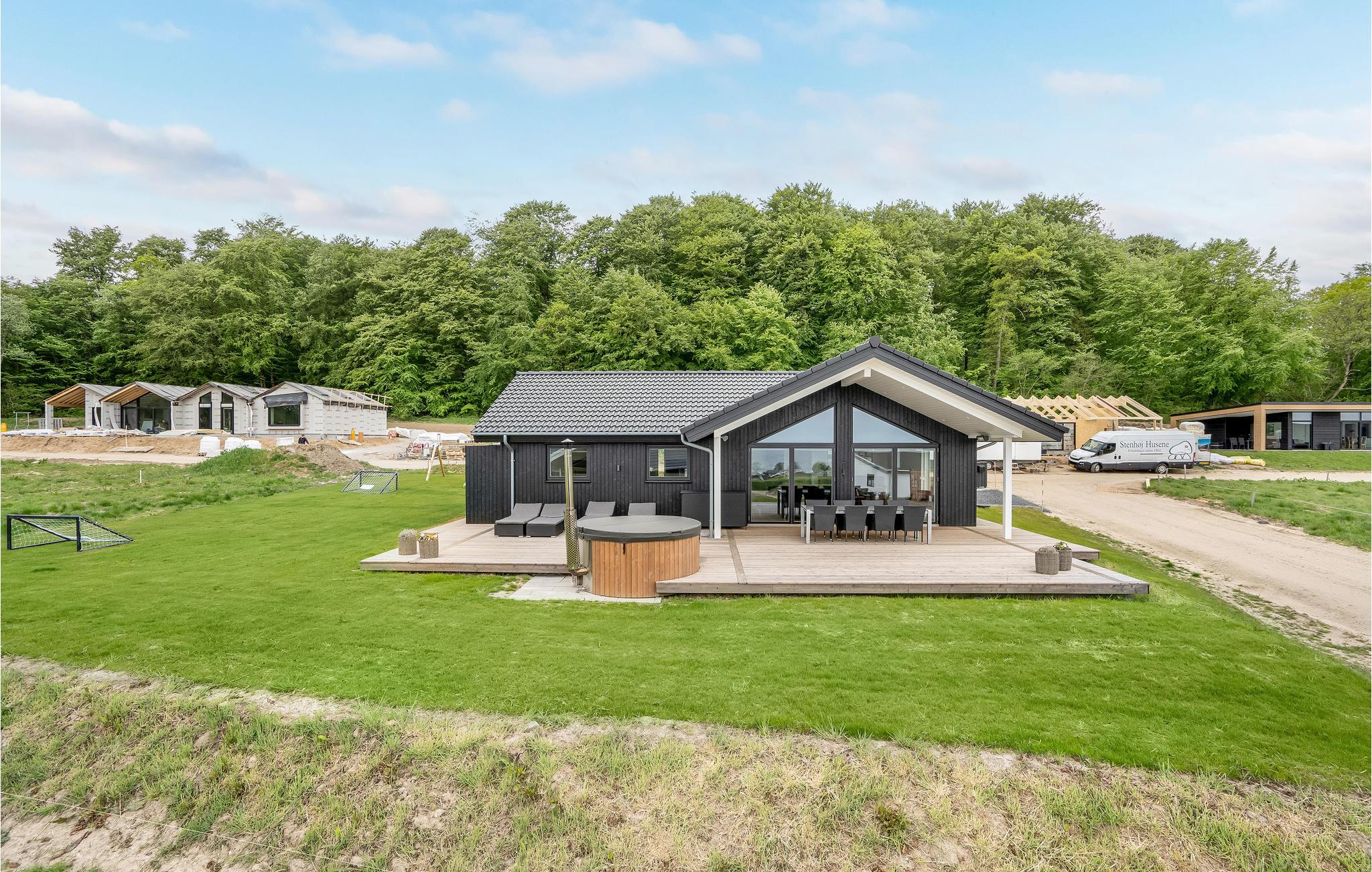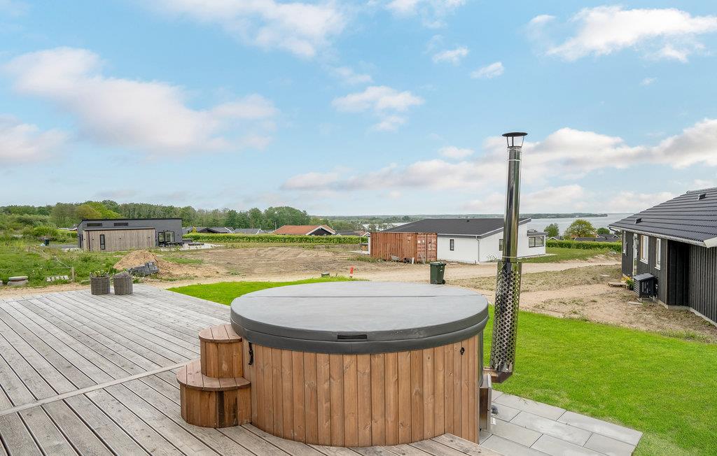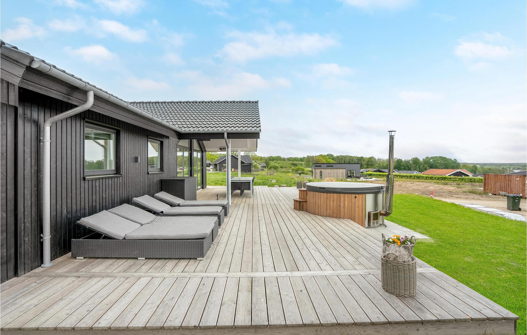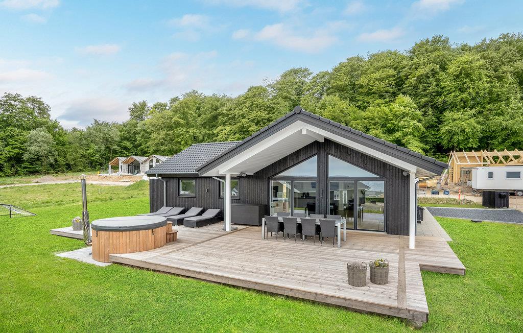 Modernes Holzferienhaus am Kleinen Belt mit Meerblick, Outdoorbad und viel Platz für Familien oder Freunde.