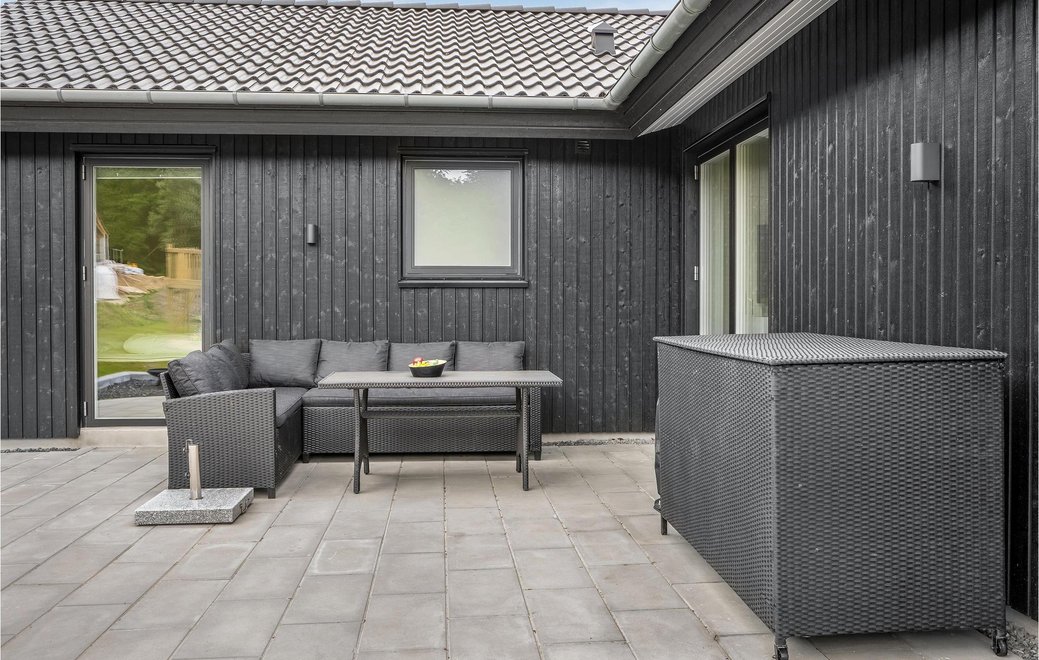 Von der Terrasse erhalten Sie einen schönen Blick auf die gemütliche Siedlung und das wenige hundert Meter entfernt gelegene Meer. Hier können Sie traumhaft schön im Outdoorbad sitzen und Ihr Lieblingsgetränk genießen. In wenigen Schritten gelangen Sie spazierend zum Wasser, wo sie Picknicken und Baden können.