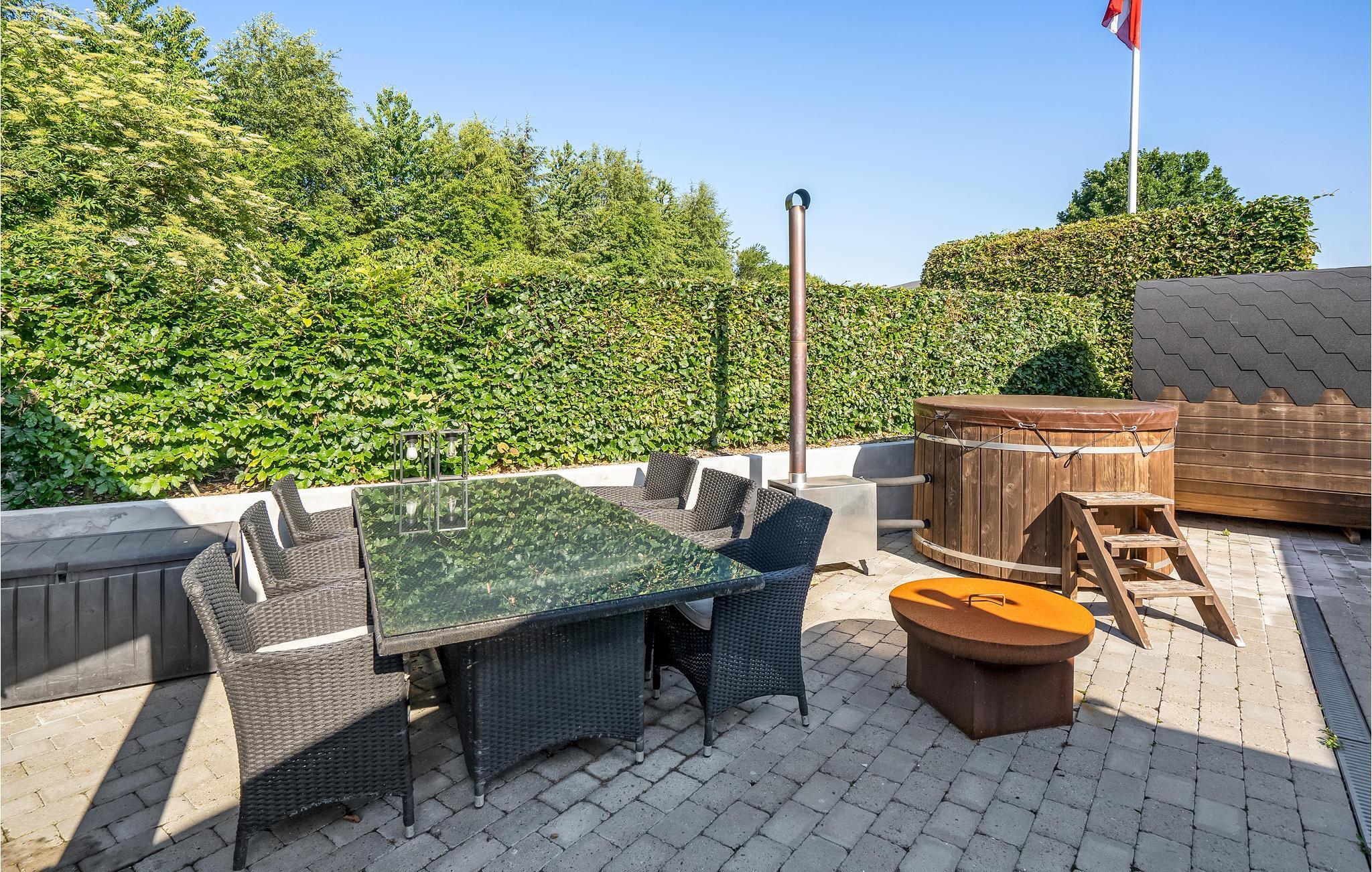 Einladendes Haus am Grønninghoved Strand mit erstklassigen Wellness-Einrichtungen.