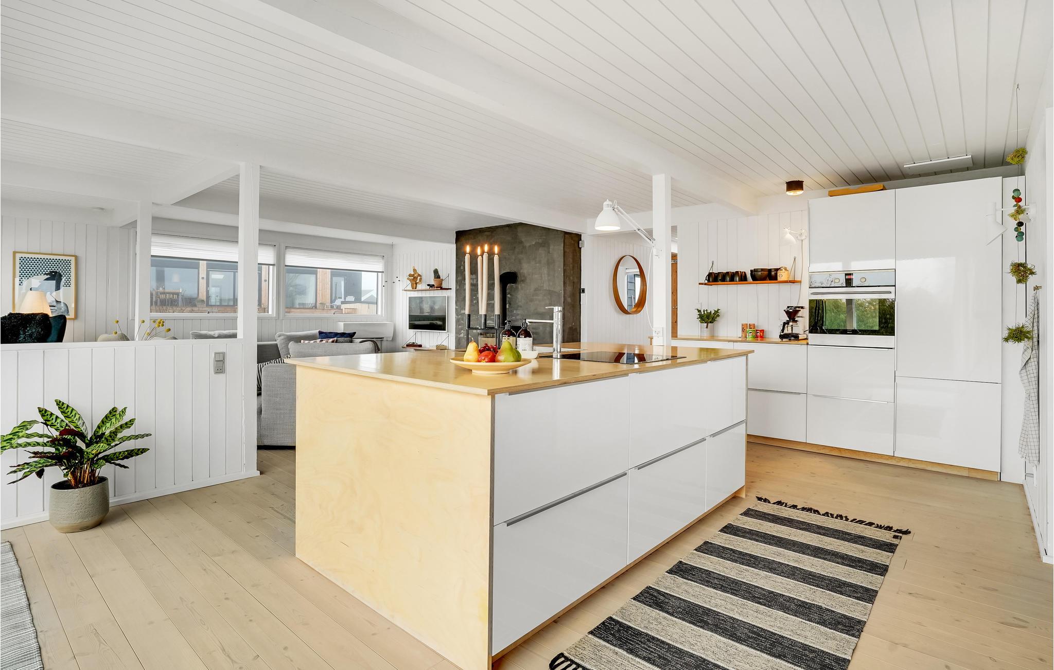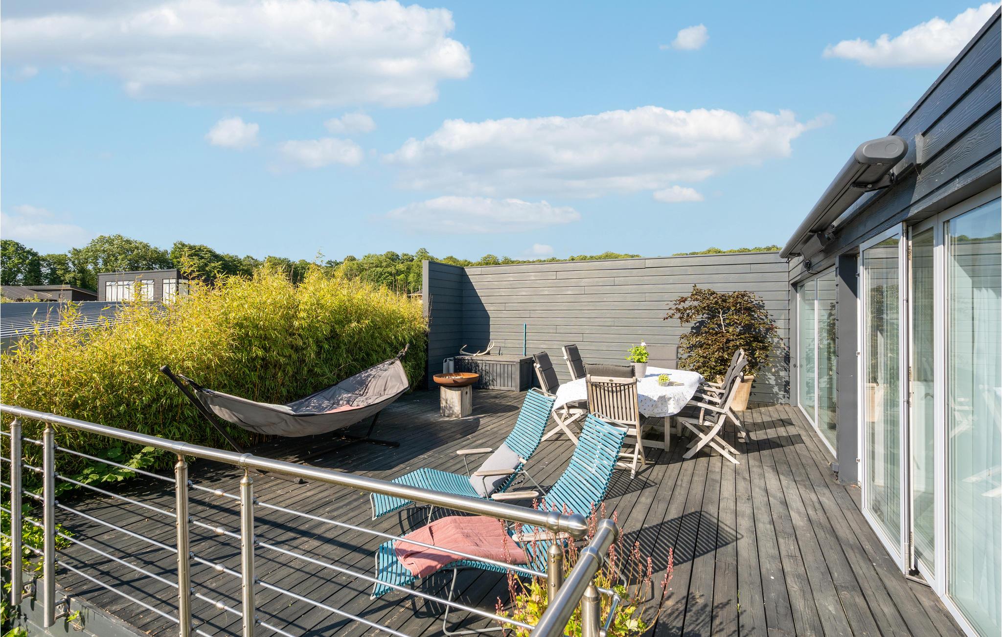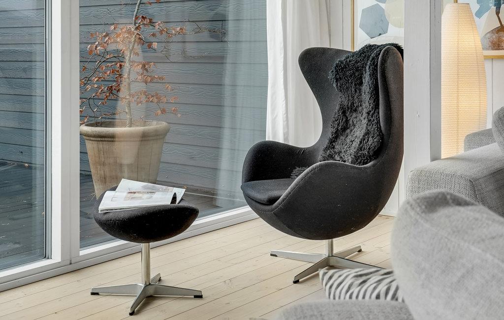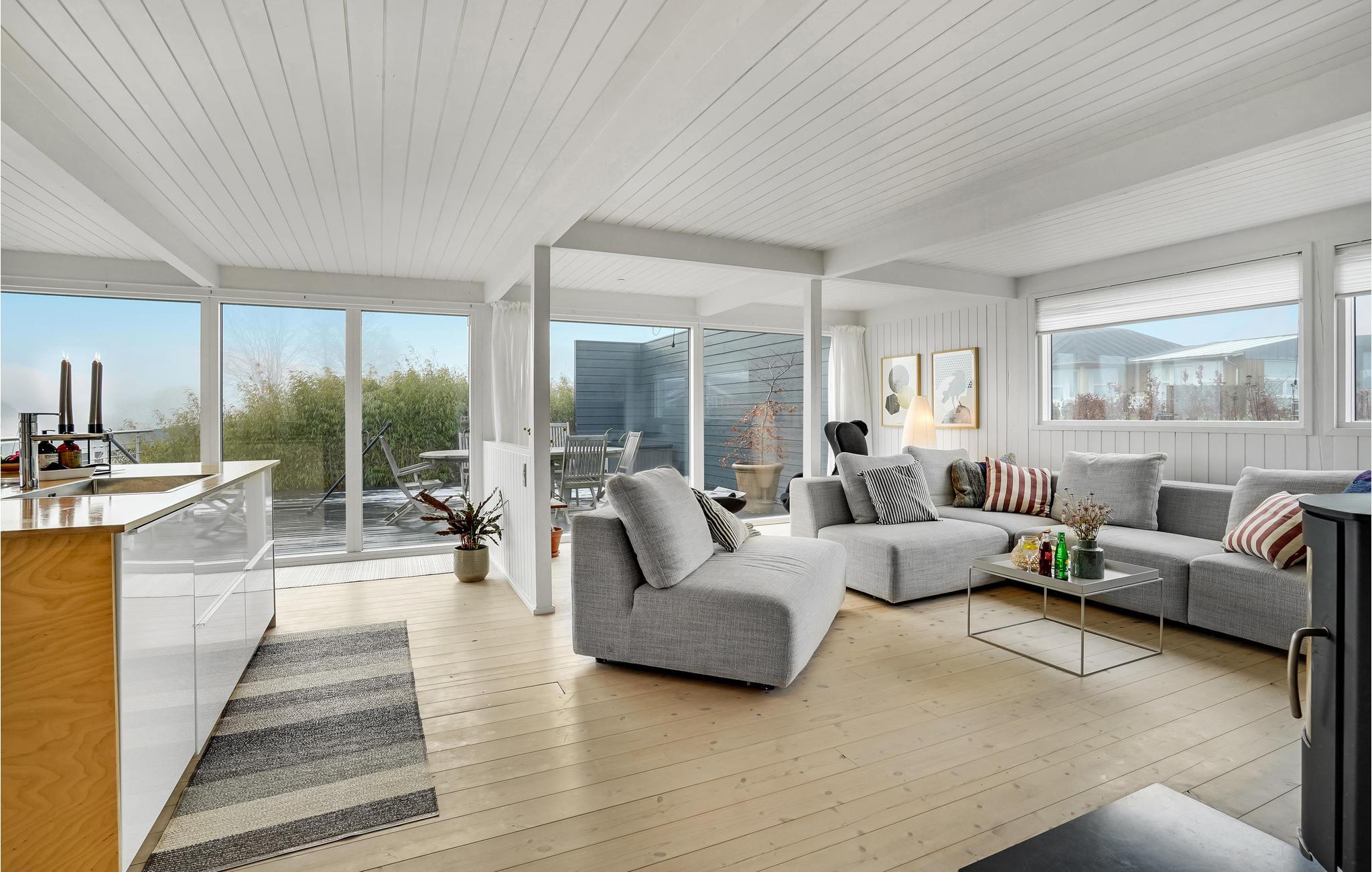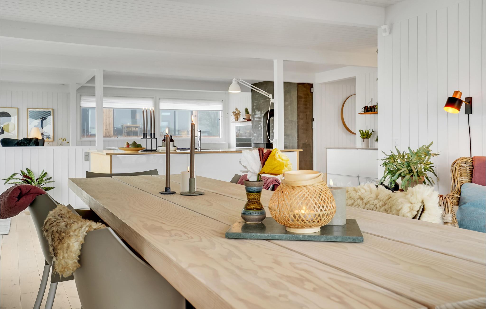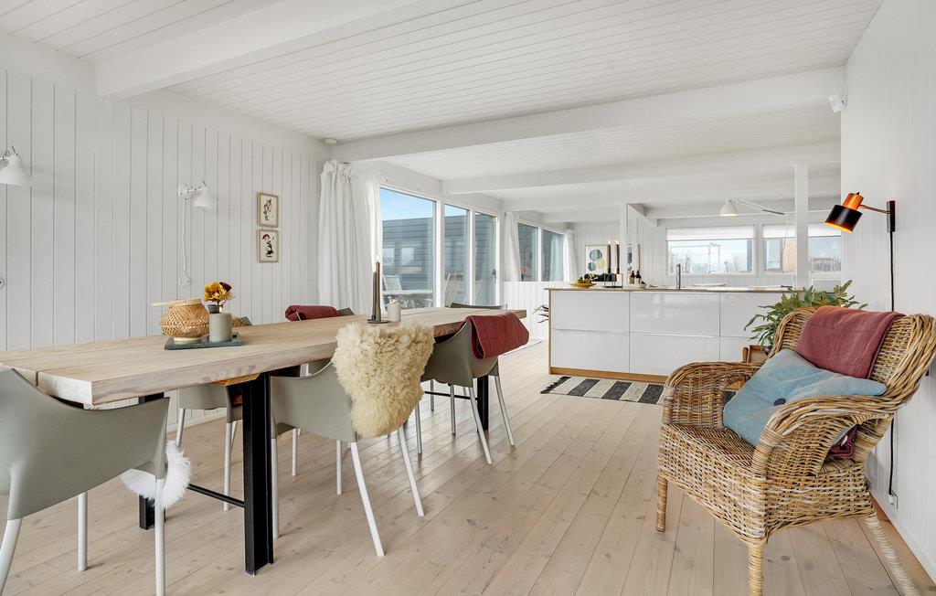 Verbringen Sie einen fantastischen Urlaub in diesem tollen Ferienhaus. Genießen Sie Ihre Ferientage sowohl in den herrlichen Innenräumen als auch der einladenden Terrasse. Der Wohnraum, der durch die riesigen Fenster in natürlichem Licht gehüllt ist, lädt Sie zum gemeinsamen Kochen, Spielen und Entspannen ein. Dafür steht Ihnen eine große Sofalandschaft bereit, auf der Sie Ihre Beine hochlegen können.