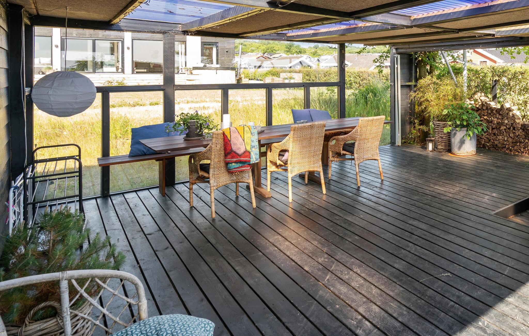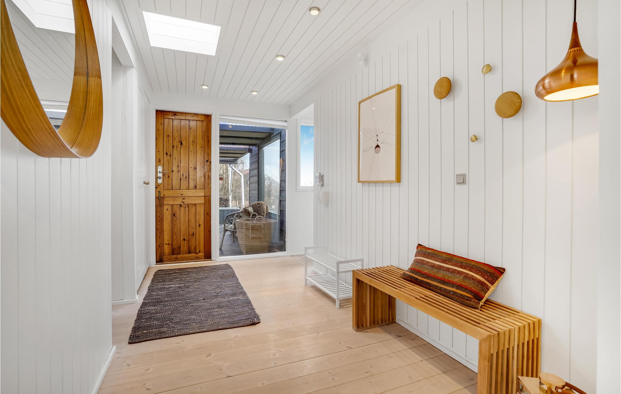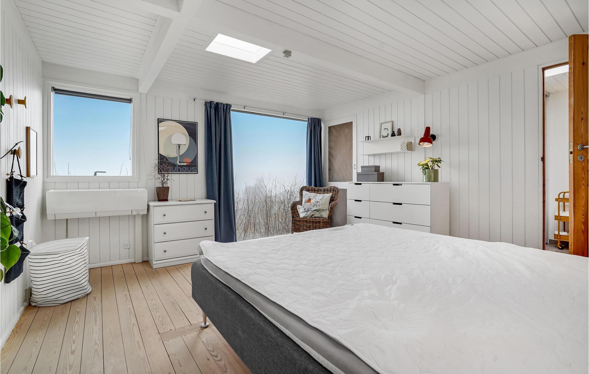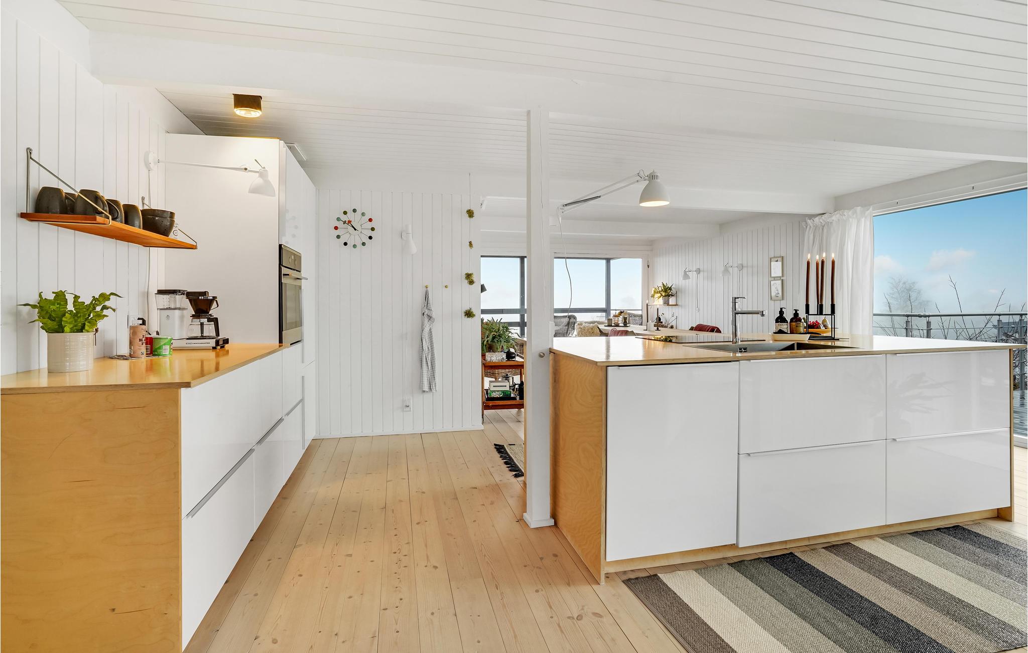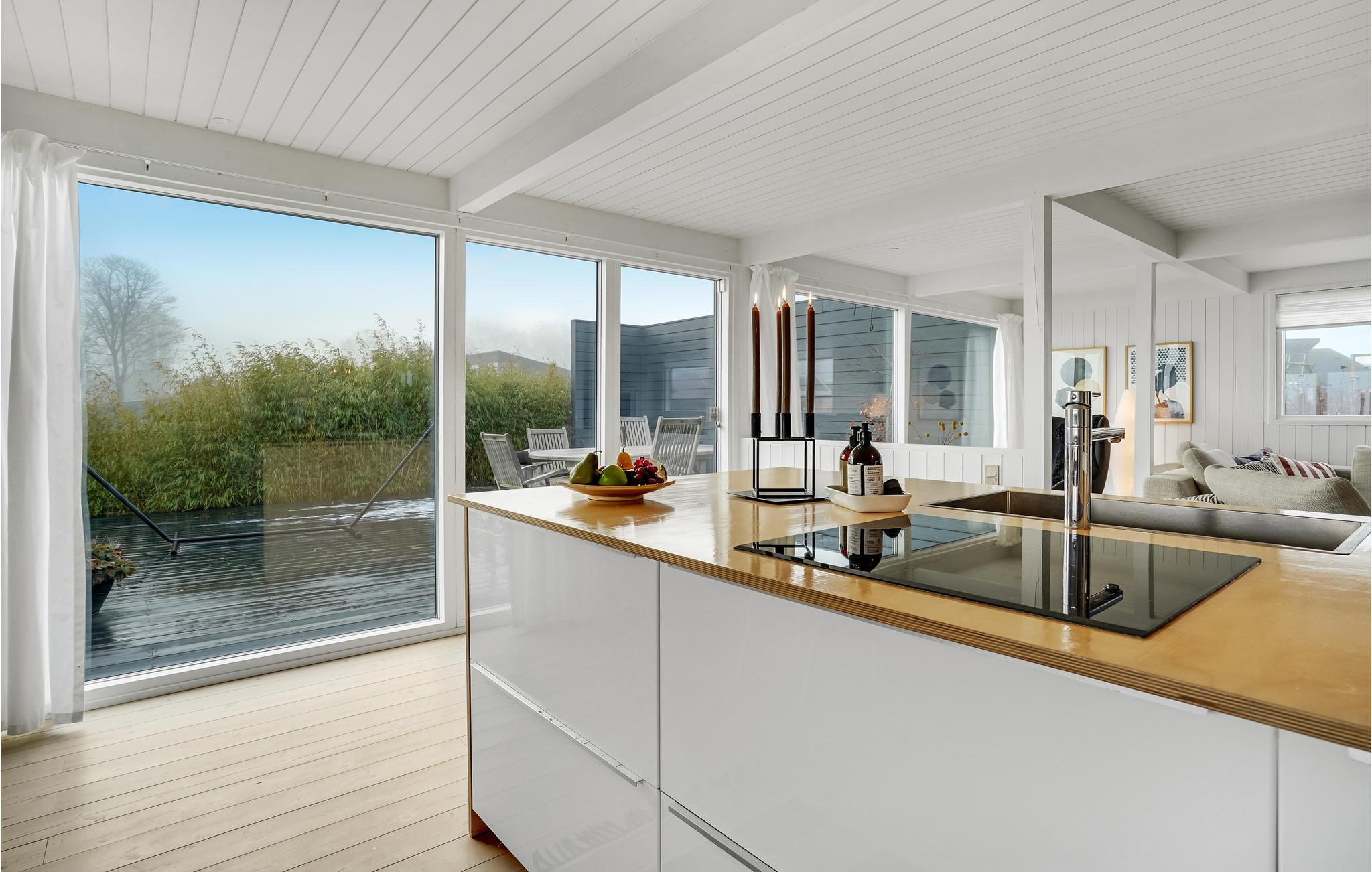 Verbringen Sie einen fantastischen Urlaub in diesem tollen Ferienhaus. Genießen Sie Ihre Ferientage sowohl in den herrlichen Innenräumen als auch der einladenden Terrasse. Der Wohnraum, der durch die riesigen Fenster in natürlichem Licht gehüllt ist, lädt Sie zum gemeinsamen Kochen, Spielen und Entspannen ein. Dafür steht Ihnen eine große Sofalandschaft bereit, auf der Sie Ihre Beine hochlegen können.