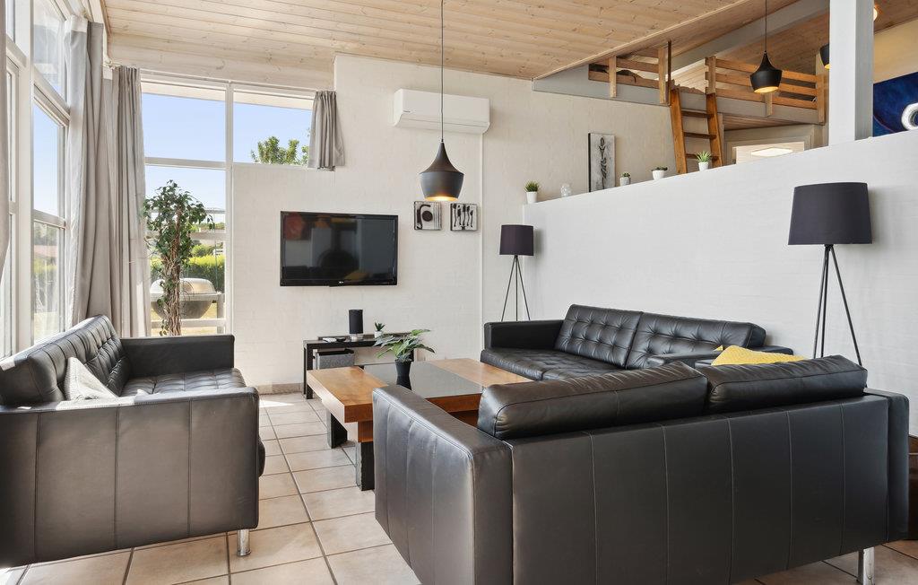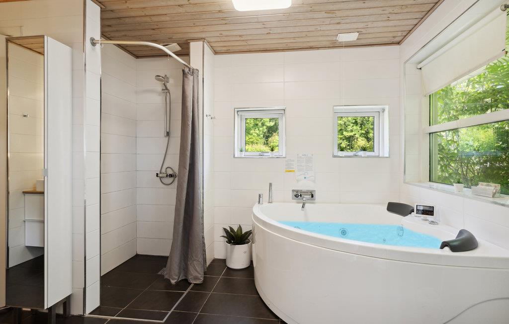 Verbringen Sie Ihren Urlaub in Grønninghoved und diesem geschmackvollen und hellen Ferienhaus. Gemeinsam mit Ihrer Großfamilie können Sie es sich in dem schönen Haus gemütlich machen. Mit Sauna und Whirlwanne haben Sie schon die besten Voraussetzungen, um sich zu entspannen. Aber auch der lichtdurchflutete Wohnraum auf mehreren Ebenen ist perfekt, um gemeinsam ein Kaminfeuer, den Ausblick und Spieleabende zu genießen. Auch das Kochen in der modernen Küche wird Ihnen Spaß machen und Sie einladen neue Rezepte auszuprobieren. Am Abend können Sie auf der großen Terrasse grillen, während Ihre Kinder klettern und schaukeln. Genießen Sie den Ausblick auf das Wasser und schmieden Pläne für die bevorstehenden Urlaubstage.
