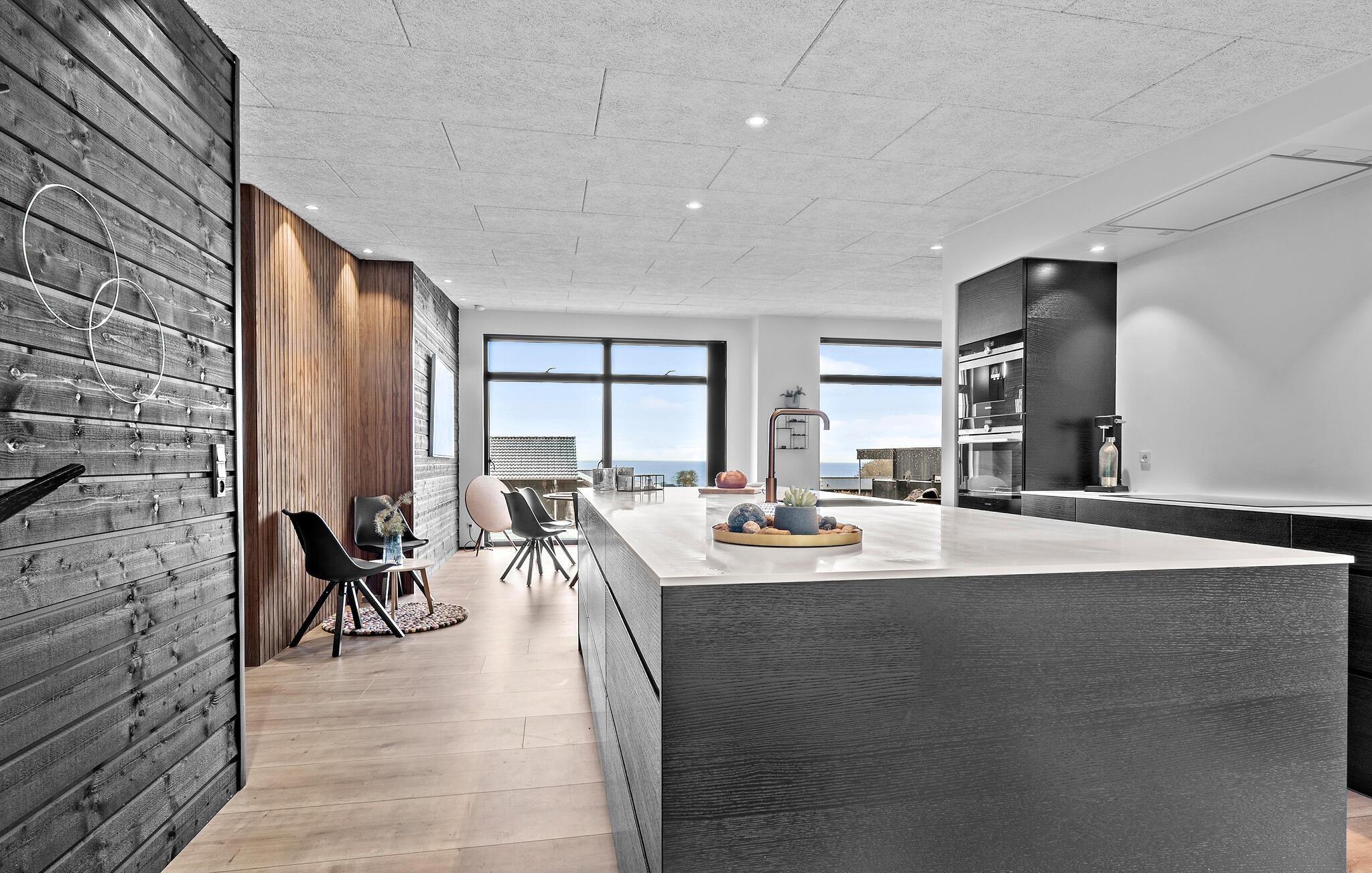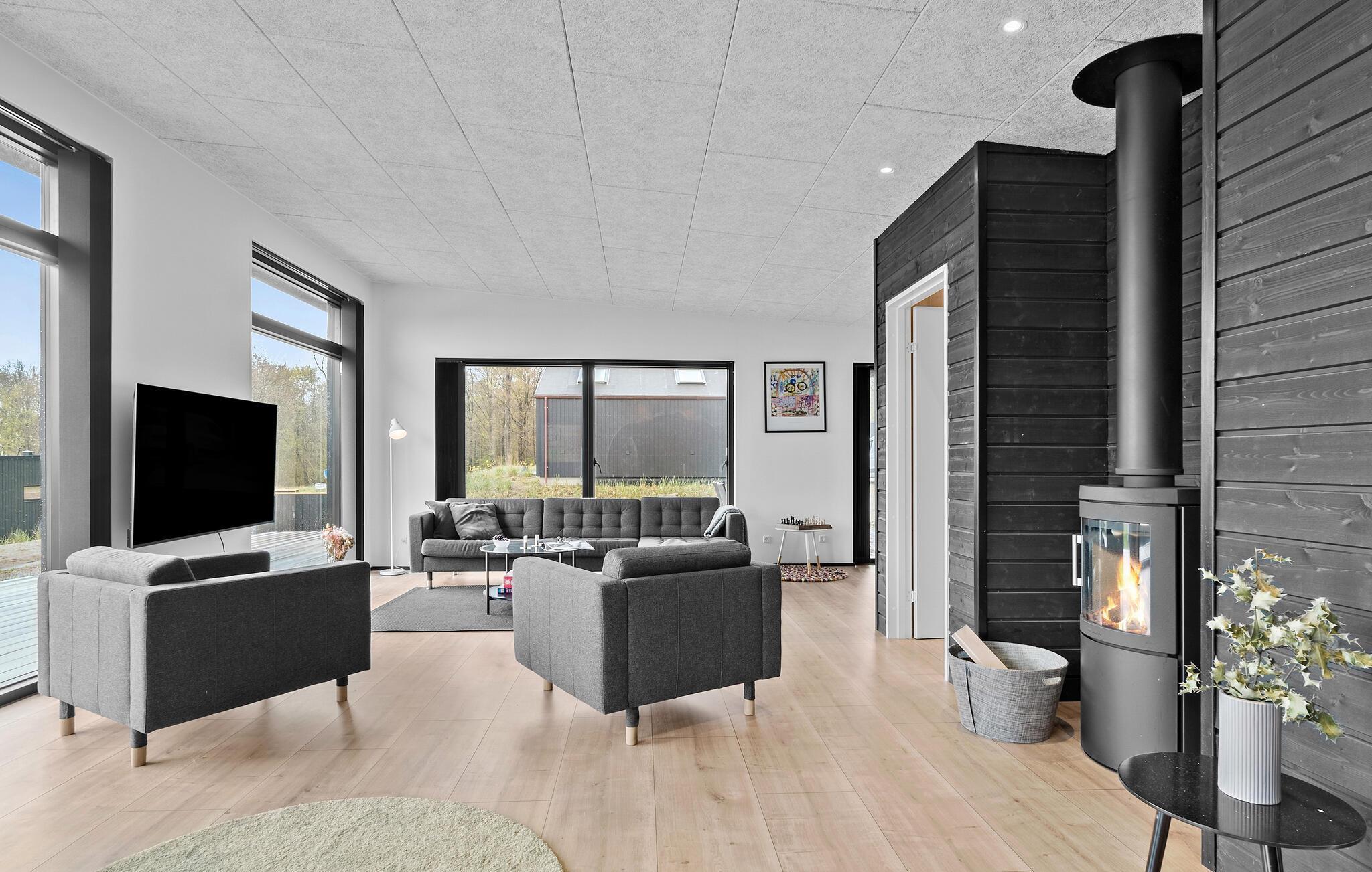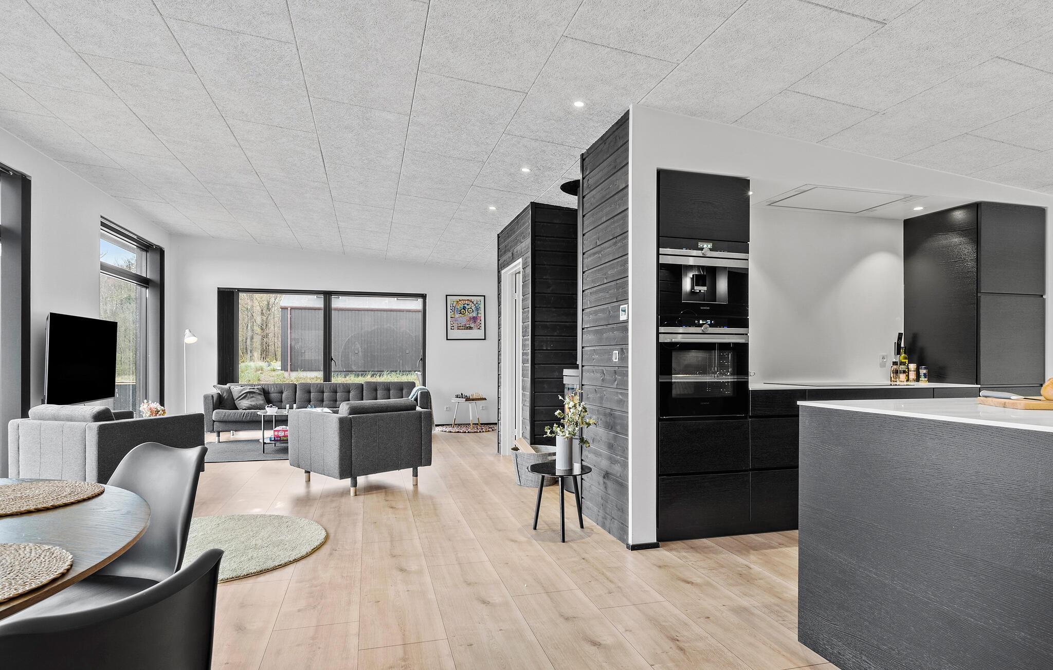 In Ihrem Ferienhaus, das durch seinen gehobenen Stil und die Nähe zum Strand besticht, erwartet Sie ein echtes Wohlfühlambiente. Der großzügige Wohnbereich mit den großen Fenstern und der angrenzenden, offenen Küche schafft einen perfekten Ort der Zusammenkunft für die ganze Familie. Hier können Sie gemeinsam spielen, essen oder einfach entspannen. Der Esstisch bietet genügend Platz für alle, und die gemütliche Sofaecke ist ideal, um den Blick in den Garten zu genießen, wo sich die Kinder austoben können. Und wie wäre es mit einem Filmabend zum Tagesausklang. Die umlaufende Terrasse des Hauses bietet eine wundervolle Aussicht auf das Meer und lädt zum Entspannen ein.