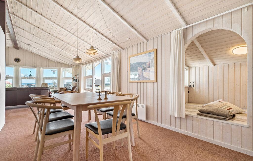 In unmittelbarer Nähe zum Strand besticht Ihr Ferienhaus durch seine elegante Ausstattung, wodurch ein echtes Wohlfühlambiente entsteht. Im großzügigen Wohnbereich mit seinen großen Fenstern und der offenen Küche können Sie gemeinsam Zeit verbringen, sei es beim Spielen, Essen oder einfach beim Entspannen. Der Esstisch bietet ausreichend Platz für alle, und die gemütlichen Sitzgelegenheiten im Wohnbereich laden dazu ein, den Blick in den Garten und auf das Meer im Hintergrund zu genießen, während die Kinder draußen spielen. Ein Filmabend am Kaminfeuer zum Tagesabschluss ist eine wunderbare Möglichkeit, den Tag ausklingen zu lassen. Entspannung pur versprechen die Sauna und der Whirlpool.