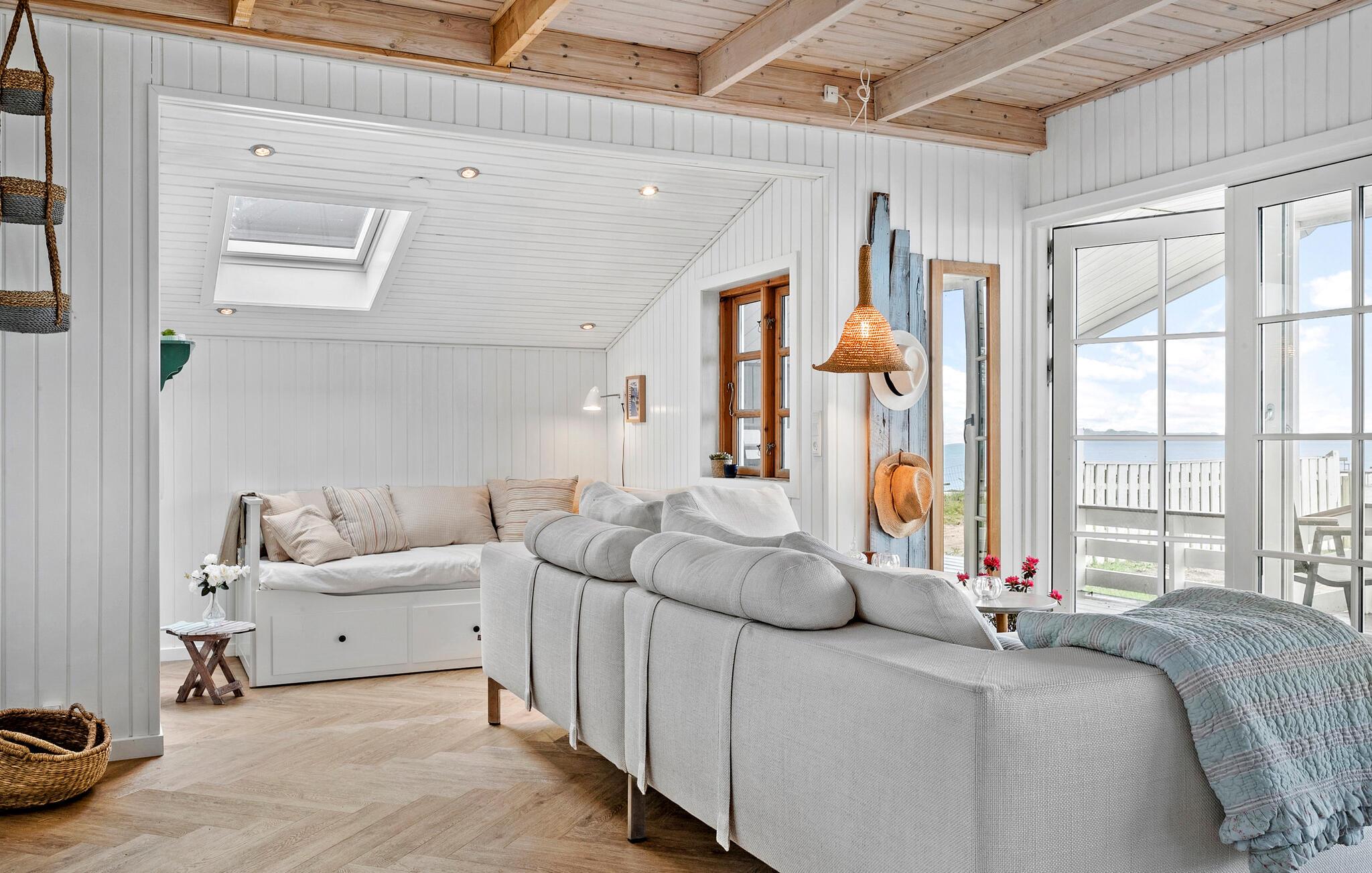 Charmantes Ferienhaus mit Meerblick direkt am Grönninghoved Strand, modern und gemütlich für entspannte Urlaubstage.
