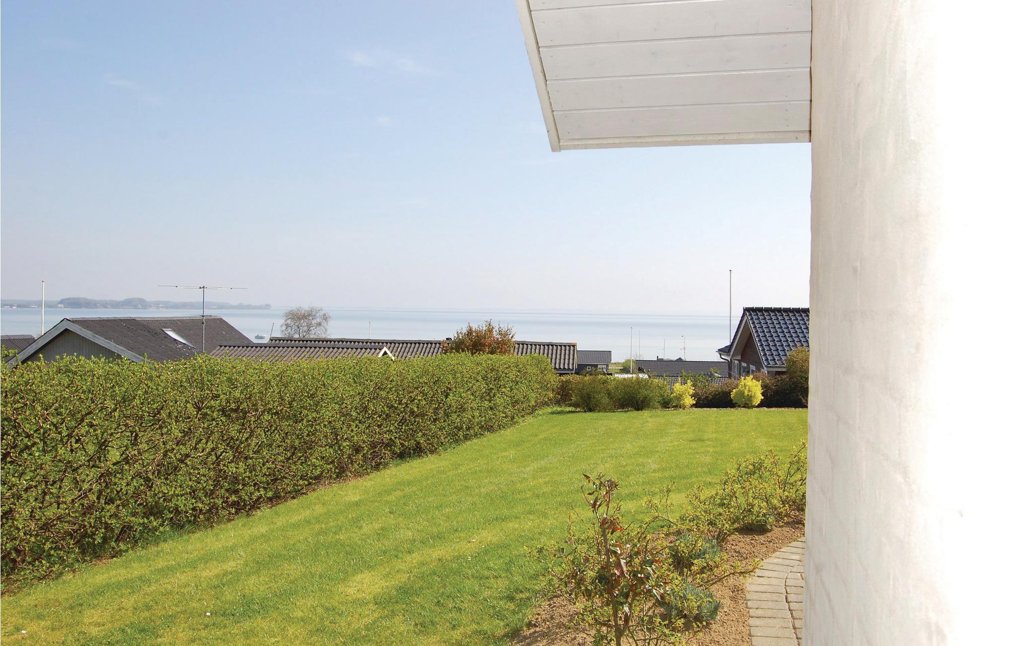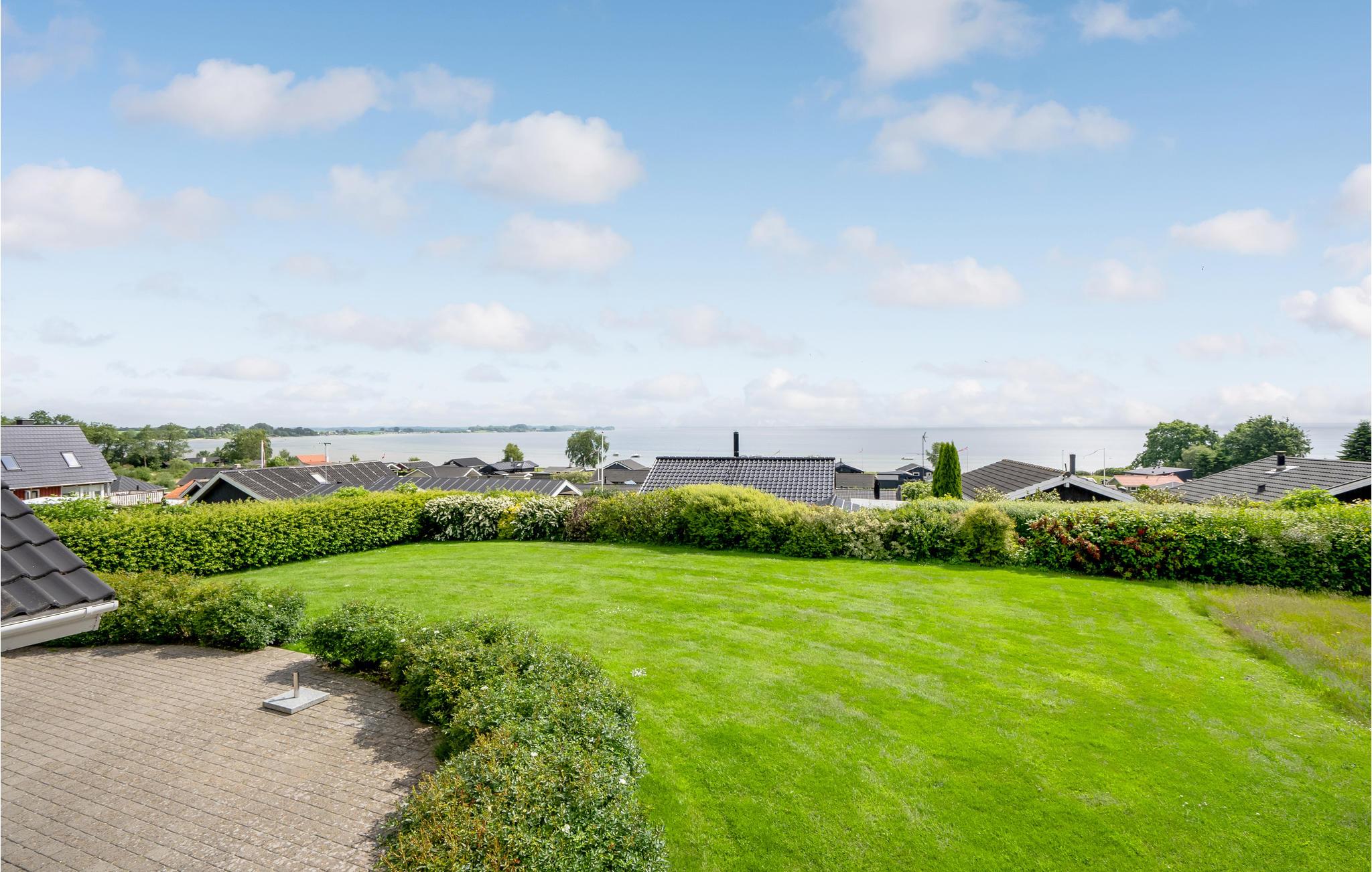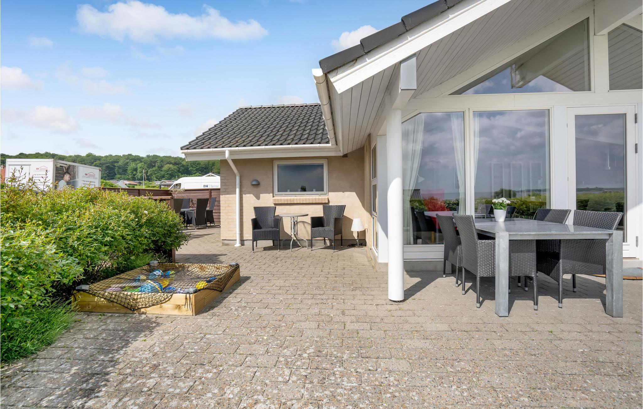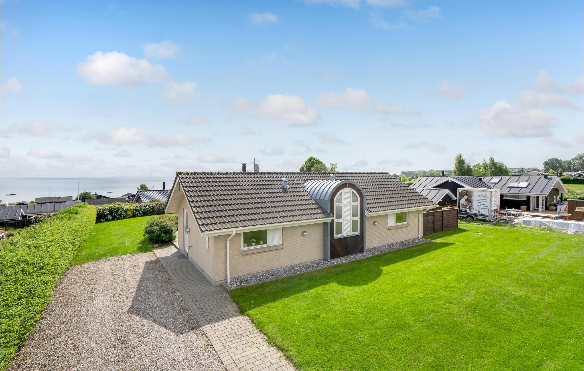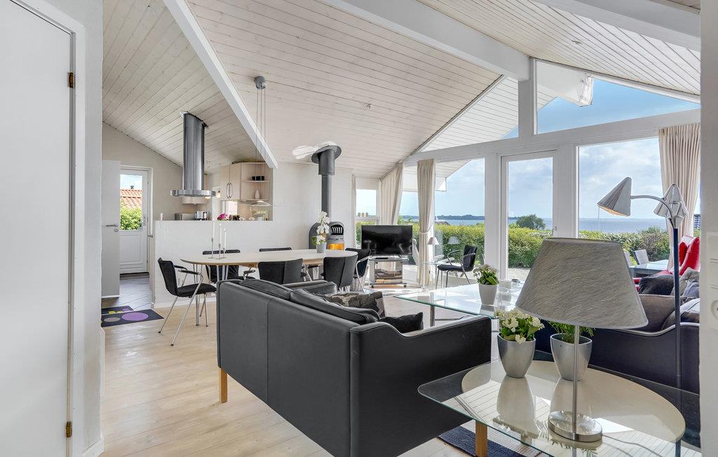 Ein helles Ferienhaus mit Whirlpool, Sauna und Panoramablick auf das Wasser nahe Grønninghoved Strand.