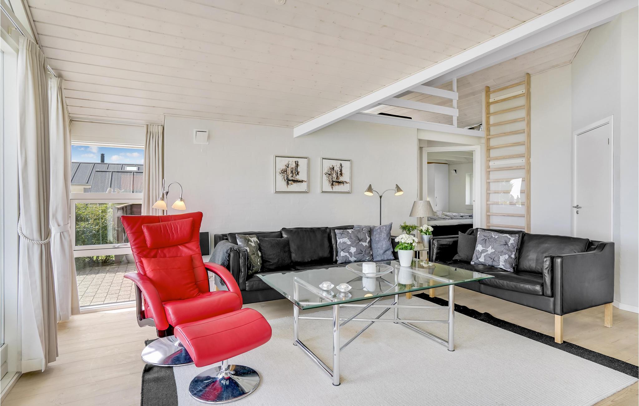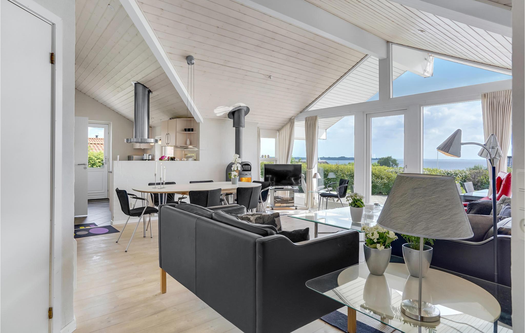 Hier empfängt Sie ein helles, freundliches Haus mit guter Einrichtung udn offenem Dachfirst. Eine große Fensterpartie im Wohnzimmer lässt Sie das Panorama bis hin zum Wasser erleben. Küche und Wohnzimmer sind nur durch eine Küchenzeile voneinander getrennt, so dass beide Räume von dem schönen Lichteinfall profitieren können.