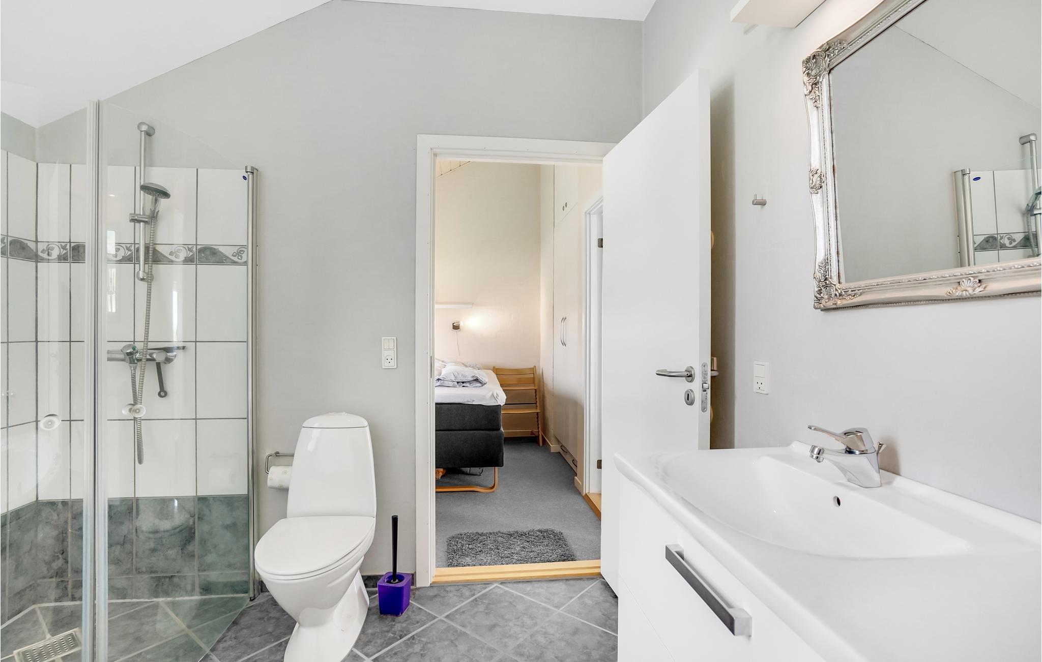 Es gibt drei helle Schlafzimmer udn zwei Badezimmer, das eine davon mit Whirlwanne und Sauna. In dem anderen Badezimmer stehen die Waschmaschine und ein Trockner.