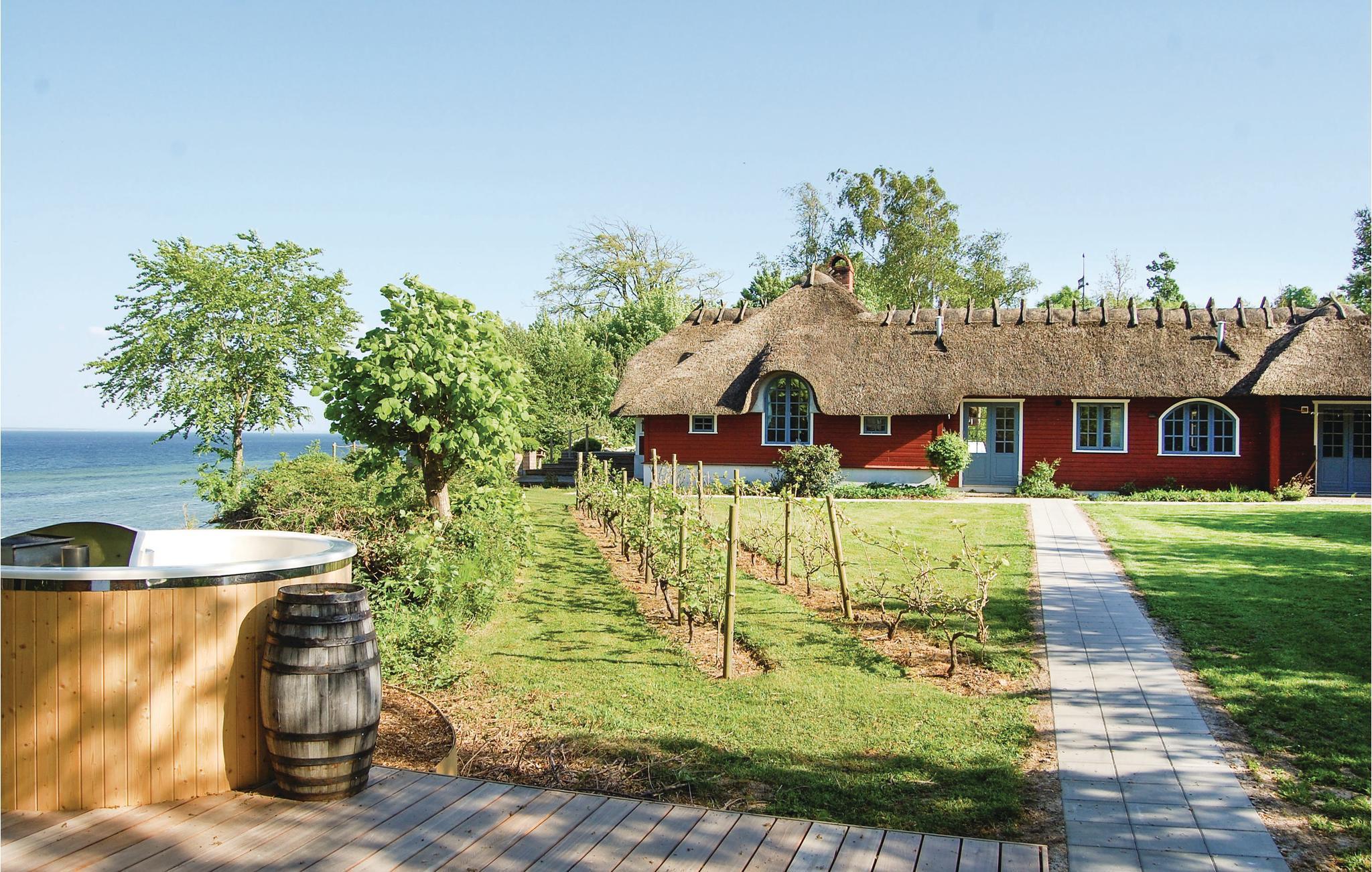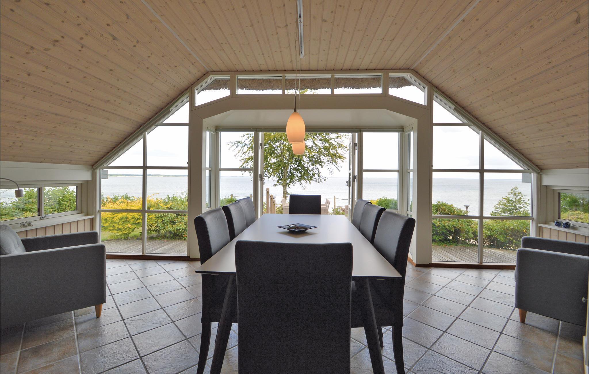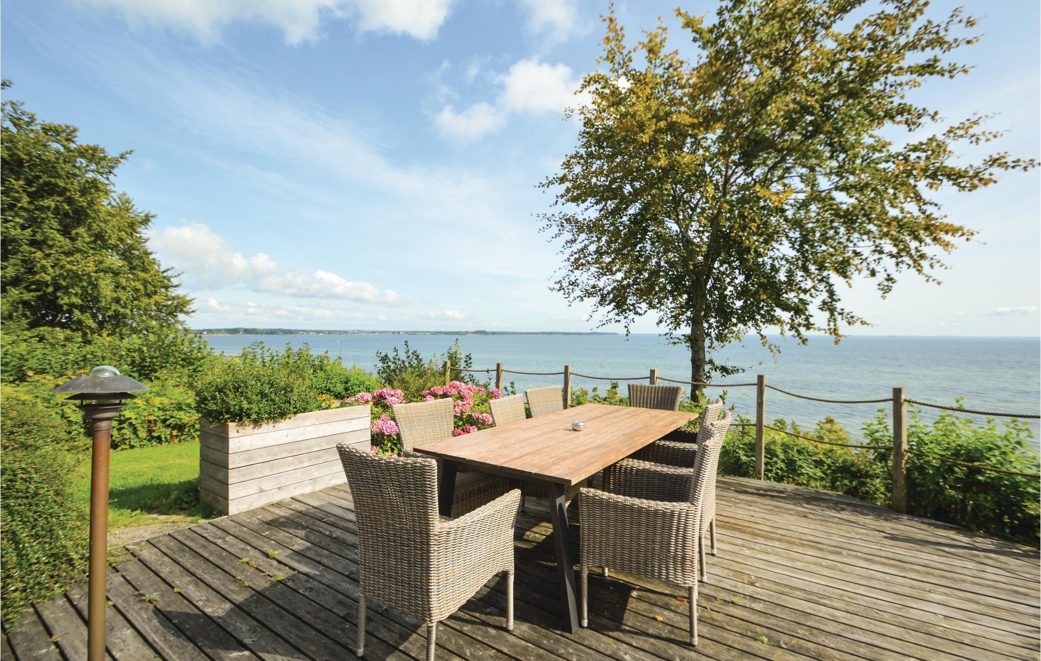 Ferienhaus in einzigartiger Lage auf einem 14.000 m² Grundstück und eigenem Strandstück, wie es selten in Dänemark zu finden ist.Das strohgedeckte Haus ist umgeben von Terrassen, die viele Aktivitäten im Freien ermöglichen, an den sonnigen Tagen genau wie an lauen Sommerabenden. Auf dem Grundstück befinden sich u.a. ein eigener Gartenteich und eine Orangerie, wo Sie sich bis spät im Jahr draußen aufhalten können, im hinteren Teil des Gartens befinden sich Weintrauben. Von den Terassen, dem Garten und aus dem Inneren des Hauses haben Sie einen herrlichen Blick auf den Kleinen Belt. Gehen Sie herunter zum Strand, der direkt unter dem Haus liegt, und genießen Sie das Strandleben ungestört und ohne massenweise andere Strandbesucher. Innen ist das Haus hell und freundlich eingerichtet, vom Eingangsbereich führen drei Treppenstufen zu den zwei großen Wohnzimmern, von denen das eine eine offene Kombination mit der Küche bildet. Vom einen Wohnzimmer gelangen Sie auf eine große Terasse mit verschiedenen Ebenen, auf der Sie den Urlaub und den Blick auf das Wasser genießen können. Neben einer Gästetoilette gibt es im Haus auch ein großes Badezimemr mit Whirlpool, wo schmerzende Muskeln mit einer Wassermassage behandelt werden können. Mit seinem Wald, den Feldern und Strand ist das Grønninghoved-Gebiet der ideale Urlaubsort für Familien mit Kindern. Zur nächsten größeren Stadt, Kolding, sind es nur wenige Minuten Fahrzeit. Hier können Sie in der Einjaufsstraße oder auch im Einkaufscenter Kolding Storcenter ausgezeichnet einkaufen. Sie finden hier ebenfalls das Schloss Koldinghus, das wirklich einen Besuch wert ist. Grønninghoved Strand wurde schon oft als Dänemarks kinderfreundlichster Strand ausgezeichnet und damit ideal für Familien mit Kindern geeignet, die hier einen Urlaub mit viel Badespaß verleben können.