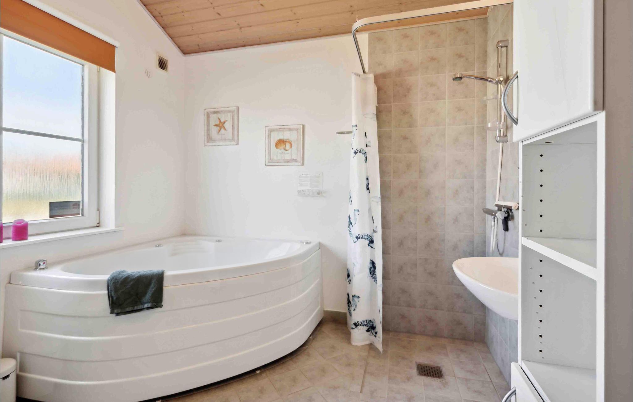 Genießen Sie Ihren Familienurlaub in diesem einladenden Ferienhaus, das Ihnen während Ihres Urlaubs zu einem zweiten Zuhause wird. Hier können Sie es sich gemütlich machen und können gemeinsame Ferientage beim Spielen im Wohnzimmer oder Kochen in der Küche genießen. Ihr persönliches Wellnessprogramm können Sie in der Whirlwanne oder in der Sauna im Haus erleben und anschließend im Wasser des Meeresarms sich nach dem Saunagang abkühlen. Am Abend können Sie zum Grillen auf der offenen Terrasse zusammenkommen. Genießen Sie den Ausblick über das Wasser und freuen sich über den großen Spielplatz in der Nähe des Hauses, auf dem Ihre Kinder Urlaubsfreundschaft schließen können. Sie erhalten zudem freien Zugang zum Wasserpark in Marina Fiskenæs.