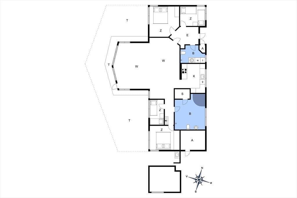 Zwei stilvolle Badezimmer sorgen für Komfort, eines davon mit einem 2-Personen-Whirlpool und Zugang zu einer wohltuenden Sauna. Nach einem langen Spaziergang am Strand oder im Wald ist dies der perfekte Ort, um die Seele baumeln zu lassen. Die Schlafplätze verteilen sich auf vier schöne Schlafzimmer: zwei mit bequemen Doppelbetten und zwei mit Einzelbetten. Hier findet jeder einen ruhigen Rückzugsort.