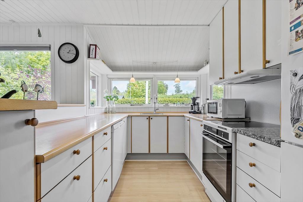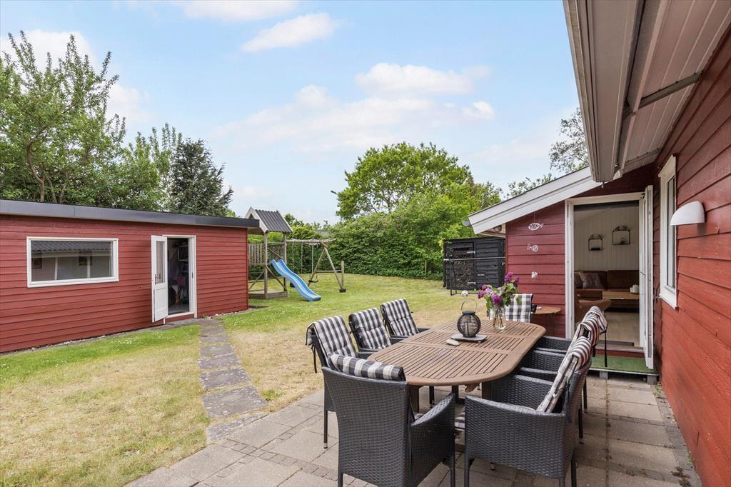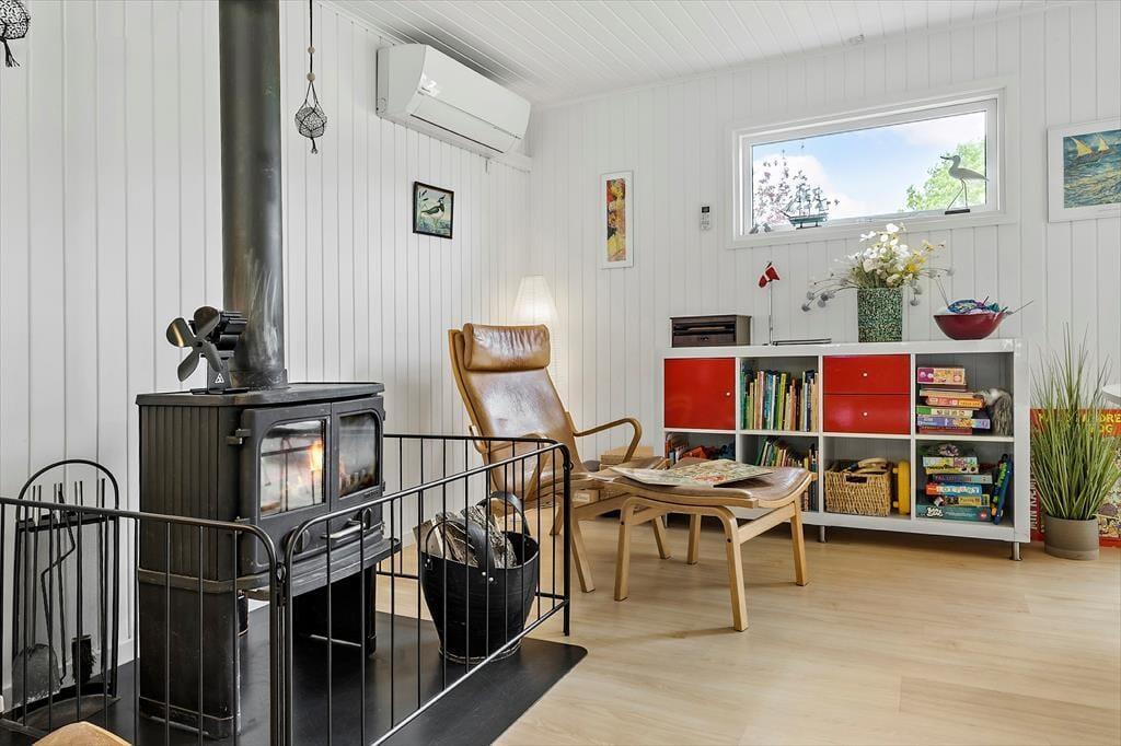 Dein gemütliches, gut eingerichtetes Ferienhaus begrüßt dich in der Nähe eines tollen Badestrands, der zu den besten von ganz Jütland zählt - perfekt für einen entspannten, erlebnisreichen Urlaub mit deinen Lieben. Im hellen, einladenden Wohnraum sorgen komfortable Polstermöbel, eine Wärmepumpe und der behaglich knisternde Kaminofen für stimmungsvolle, klassische Ferienhausatmosphäre. Mache es dir einfach in aller Ruhe gemütlich und lese ein spannendes Buch oder versammle deine Familienmitglieder um dich und genieße eine unterhaltsame Kartenspielrunde. Offen an den Wohnraum schließt die ansprechende Küche, die mit allem ausgestattet ist, was du für die Zubereitung köstlicher Urlaubsgerichte brauchst. Den ungeliebten Abwasch übernimmt selbstverständlich der Geschirrspüler. Eines der beiden Badezimmer verfügt über eine Badewanne, die nach einem langen, aktiven Urlaubstag pure Erholung und Entspannung verspricht. Drei der vier Schlafräume begrüßen dich mit je einem Doppelbett. Im vierten Raum steht ein doppeltes Schlafsofa bereit, das sich gut für Übernachtungsgäste oder Teenager eignet. Für die kleinsten Urlaubsgäste sind ein Kinderbett und ein Hochstuhl vorhanden. Viel Spaß und Abwechslung garantiert nicht nur den Kindern der renovierte Gartenschuppen, in dem eine Dartscheibe und ein Tischkicker zu manch familieninterner Meisterschaft einladen.