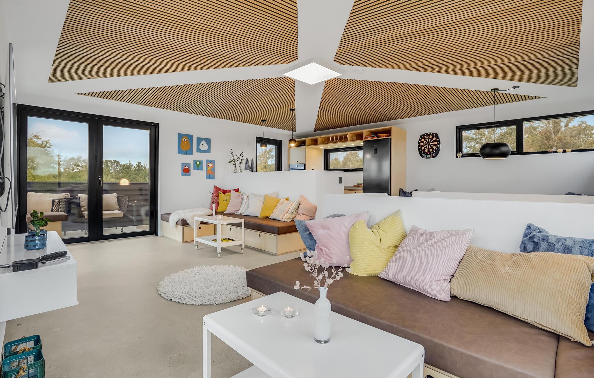 Modernes Strandhaus in Grenaa mit Sauna, Meerblick und finnischem Holzbad für erholsame Familienferien.
