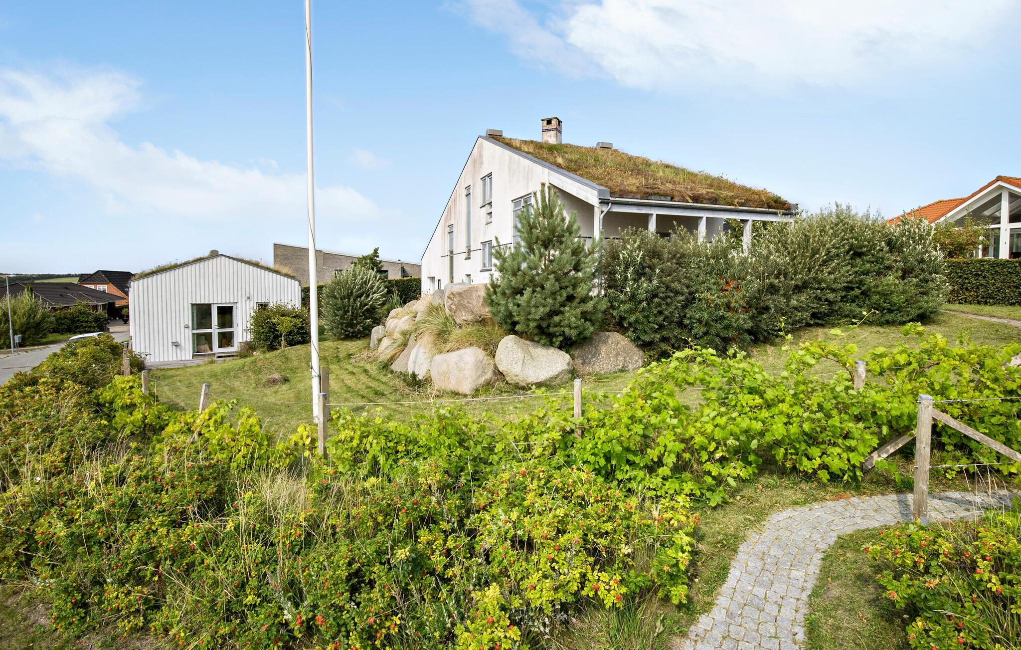 Modernes Ferienhaus in Grenaa mit einzigartiger Architektur und herrlichem Blick auf die ruhige Landschaft.