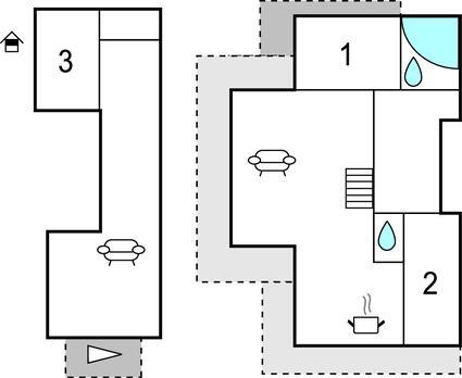 Badezimmer (nr. 1) - WC. Warmes und kaltes Wasser. Dusche
