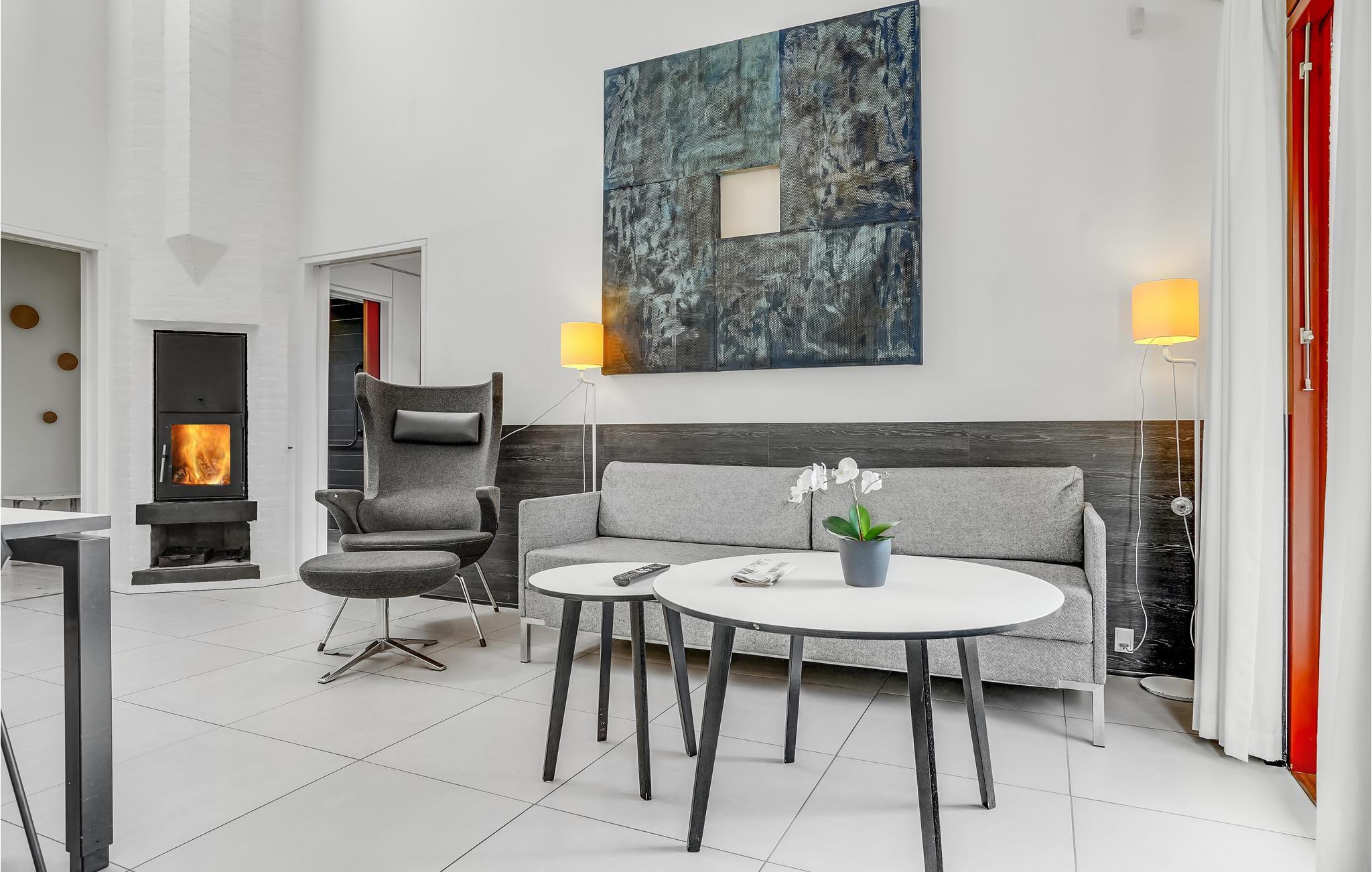 Dieses helle und freundliche Ferienhaus heißt bis zu fünf Gäste und ein zusätzliches Kleinkind herzlich willkommen. In dem praktischen Ferienhaus finden Sie einen gemütlichen Wohraum mit Küche. Hier können Sie es sich vor dem Holzbrennofen gemütlich machen. Durch die großen Fenster strömt viel Licht. Das Haus ist hell und freundlich eingerichtet.