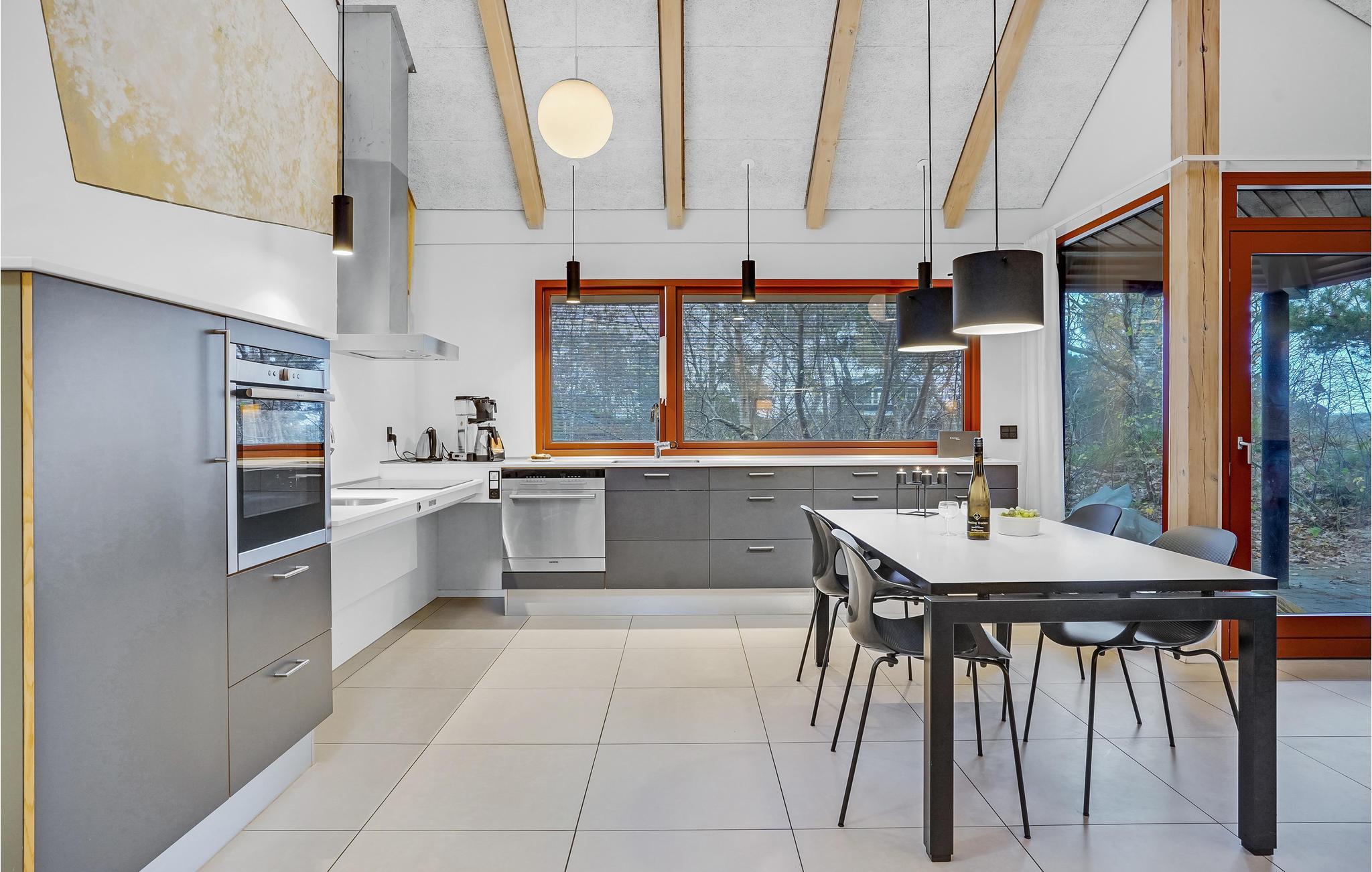 Dieses helle und freundliche Ferienhaus heißt bis zu fünf Gäste und ein zusätzliches Kleinkind herzlich willkommen. In dem praktischen Ferienhaus finden Sie einen gemütlichen Wohraum mit Küche. Hier können Sie es sich vor dem Holzbrennofen gemütlich machen. Durch die großen Fenster strömt viel Licht. Das Haus ist hell und freundlich eingerichtet.