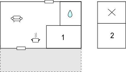 Badezimmer (nr. 1) - WC. Warmes und kaltes Wasser. Dusche