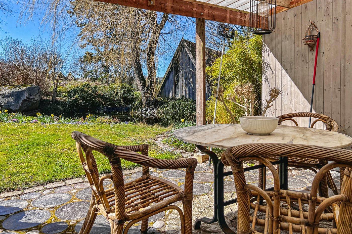 Es gibt mehrere teilweise überdachte Terrassen sowie eine Dachterrasse mit der schönsten Aussicht – den Morgenkaffee in erster Reihe mit einem herrlichen Ausblick zu genießen, kann nur ein Vergnügen sein. Der große Garten ist ein Erlebnis für sich mit einem kleinen Teich, einer großen, abgesenkten Sandterrasse, und in der entferntesten Ecke hört man die Hühner in ihrem Gehege leise gackern. Mieter und Eigentümer teilen sich den Garten, wobei der Eigentümer bestimmte Bereiche nutzt. Der Eigentümer wohnt im Haupthaus.