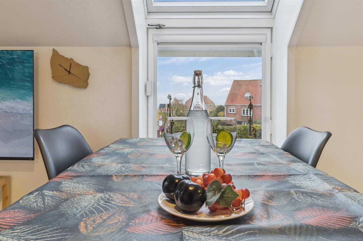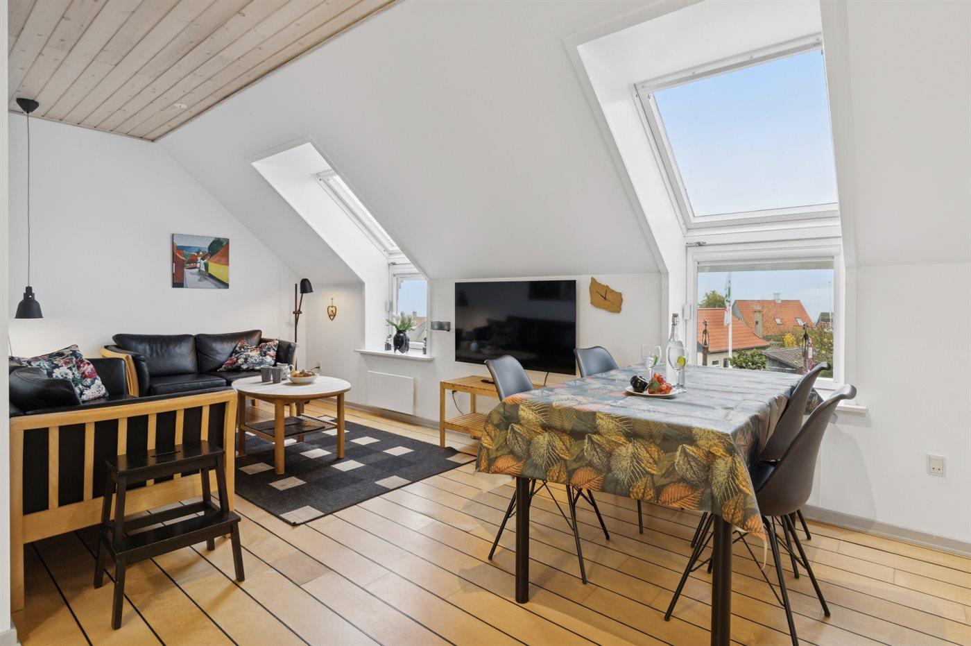 Die Wohnung liegt zentral in Gudhjem, wo die hügelige Brøddegade hinunter zum Hafen führt. Von dort fährt täglich die Fähre zur Insel Christiansø. In Gudhjem findest du zahlreiche Restaurants, einen Supermarkt und viele kleine Geschäfte. Die Felsküste bietet idyllische Buchten und zerklüftete Klippenformationen – hier bekommst du das Gefühl, im Süden zu sein, wenn du deinen Urlaub in Gudhjem verbringst.