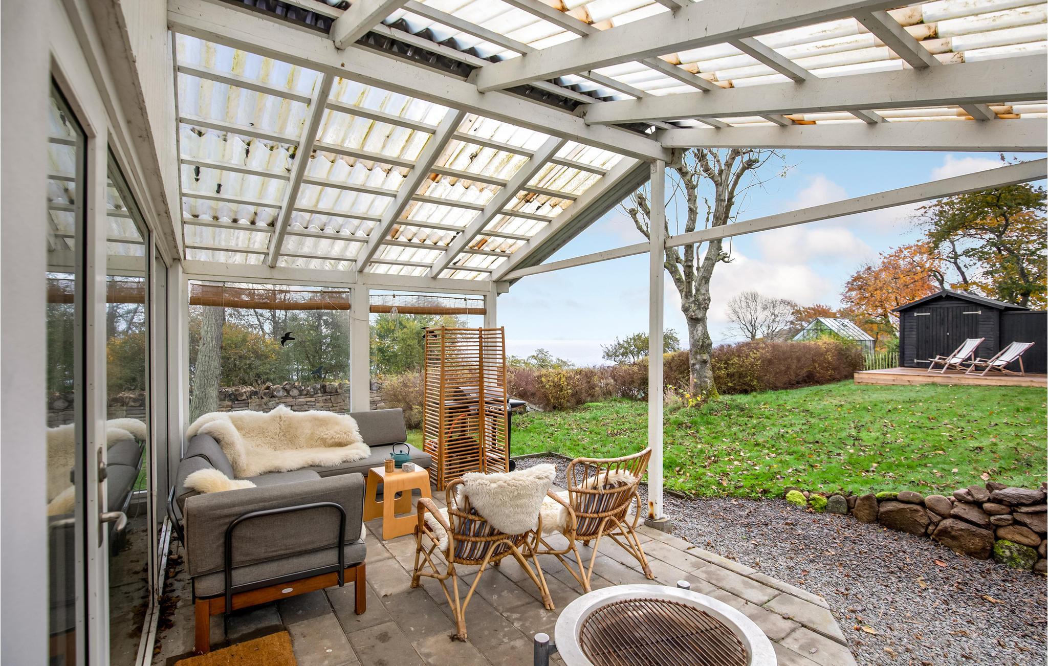 Genießen Sie morgens am Esstisch ein leckeres Frühstück oder nehmen Sie es bei schönem Wetter auf die schöne Terrasse mit. Schlürfen Sie einen frisch gebrühten Kaffe beim Vogelgesang und lassen Sie den Blick über die umgebende Natur schweifen. Später finden Sie in der Loungeecke auf der überdachten Terrasse den perfekten Ort für einen stimmungsvollen Ausklang des Tages.
