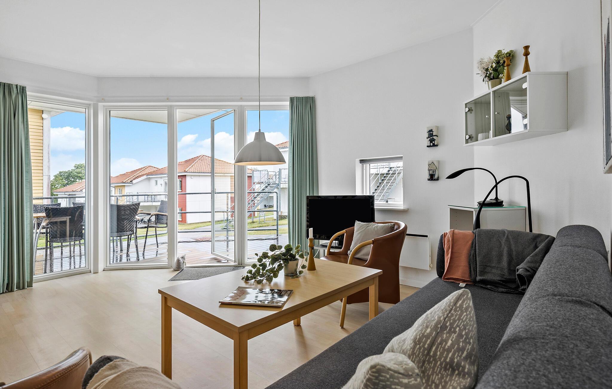 Helle Ferienwohnung in Gudhjem mit Meerblick, zwei Terrassen und moderner Ausstattung für entspannte Urlaubstage.