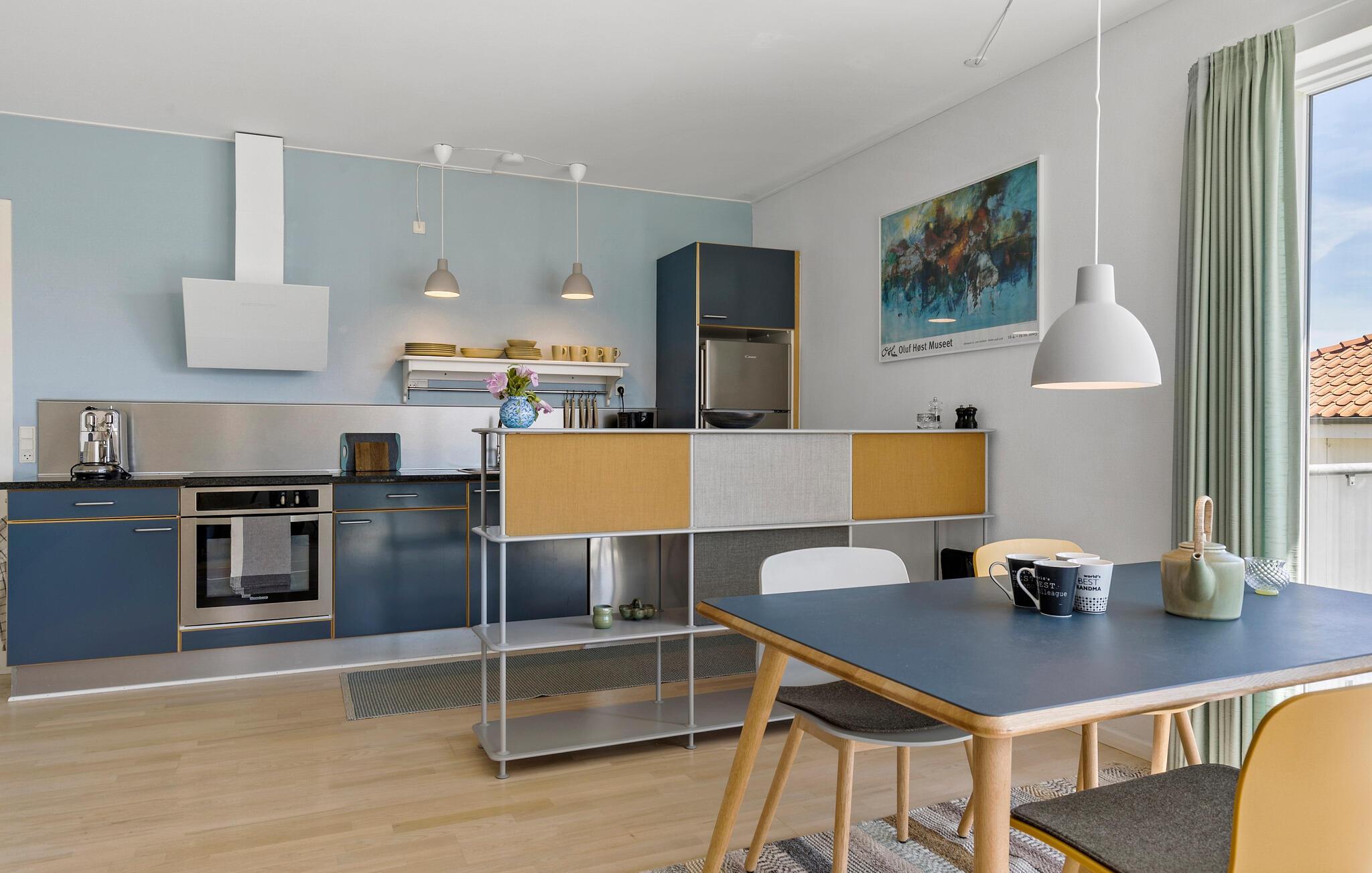 Helle Ferienwohnung mit Meerblick in Gudhjem, ideal für Familien, mit zwei Terrassen und moderner Ausstattung.