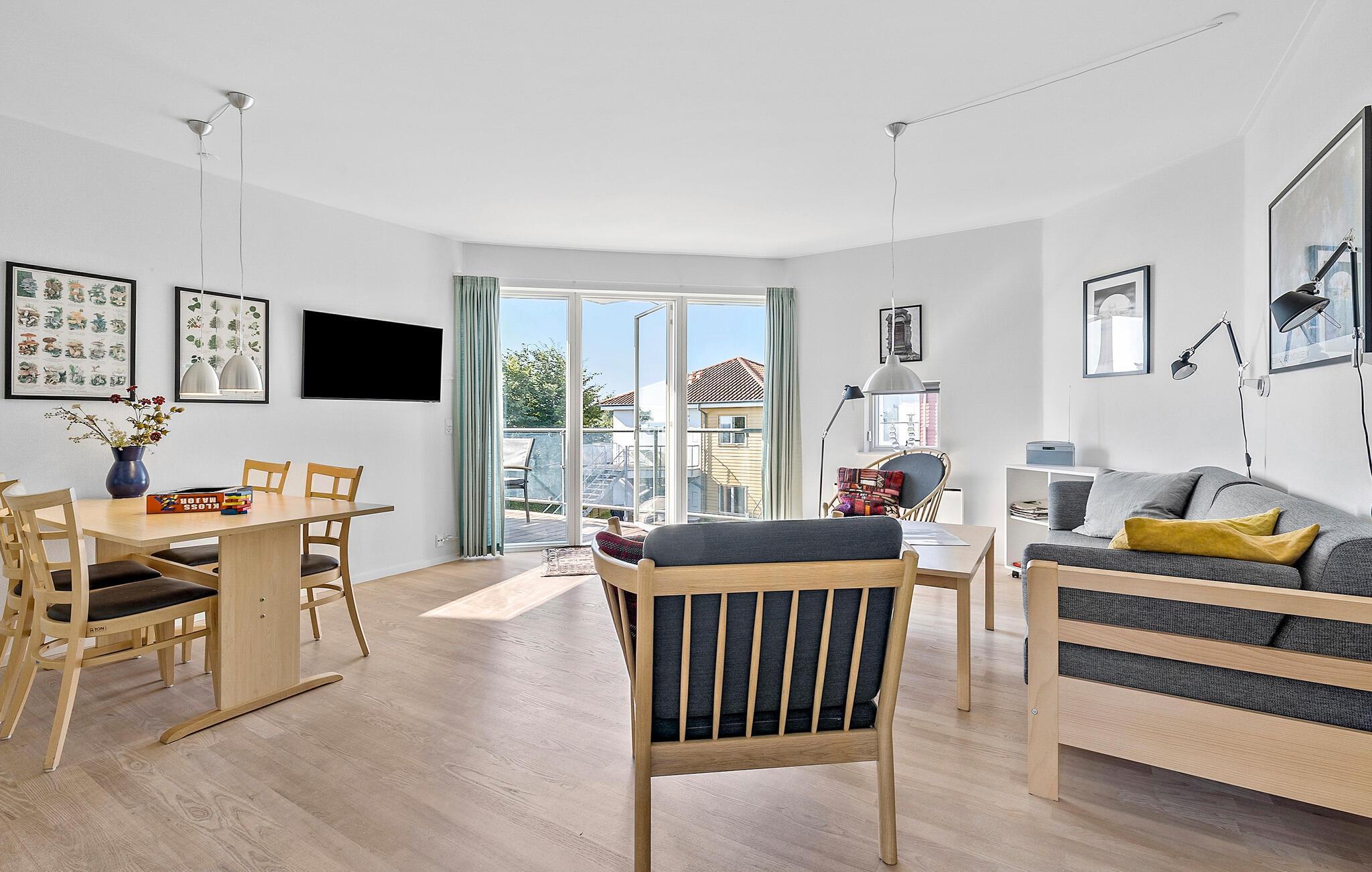 Helle Ferienwohnung in Gudhjem mit Meerblick, zwei Terrassen und moderner Ausstattung für einen entspannten Urlaub an der Ostsee.